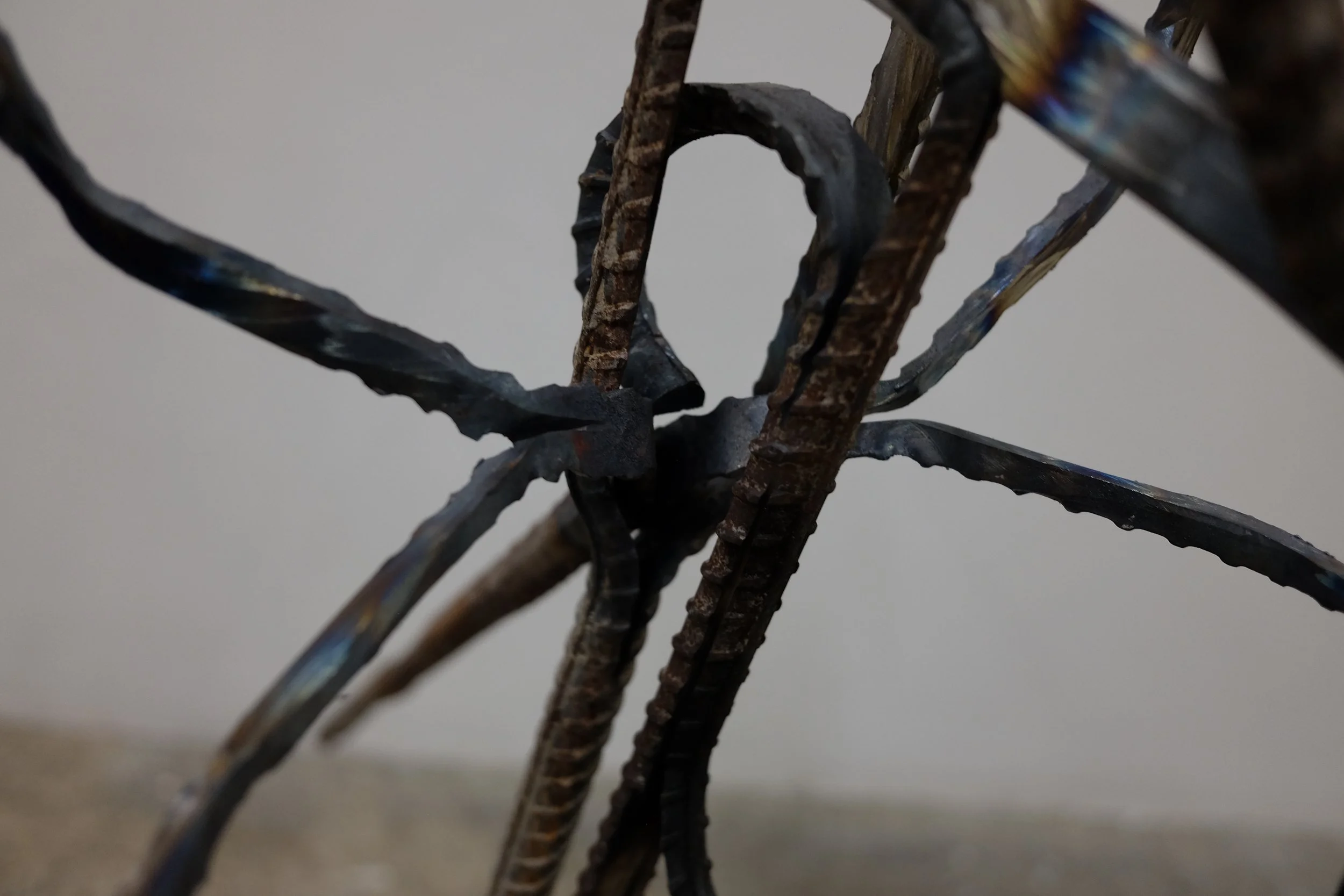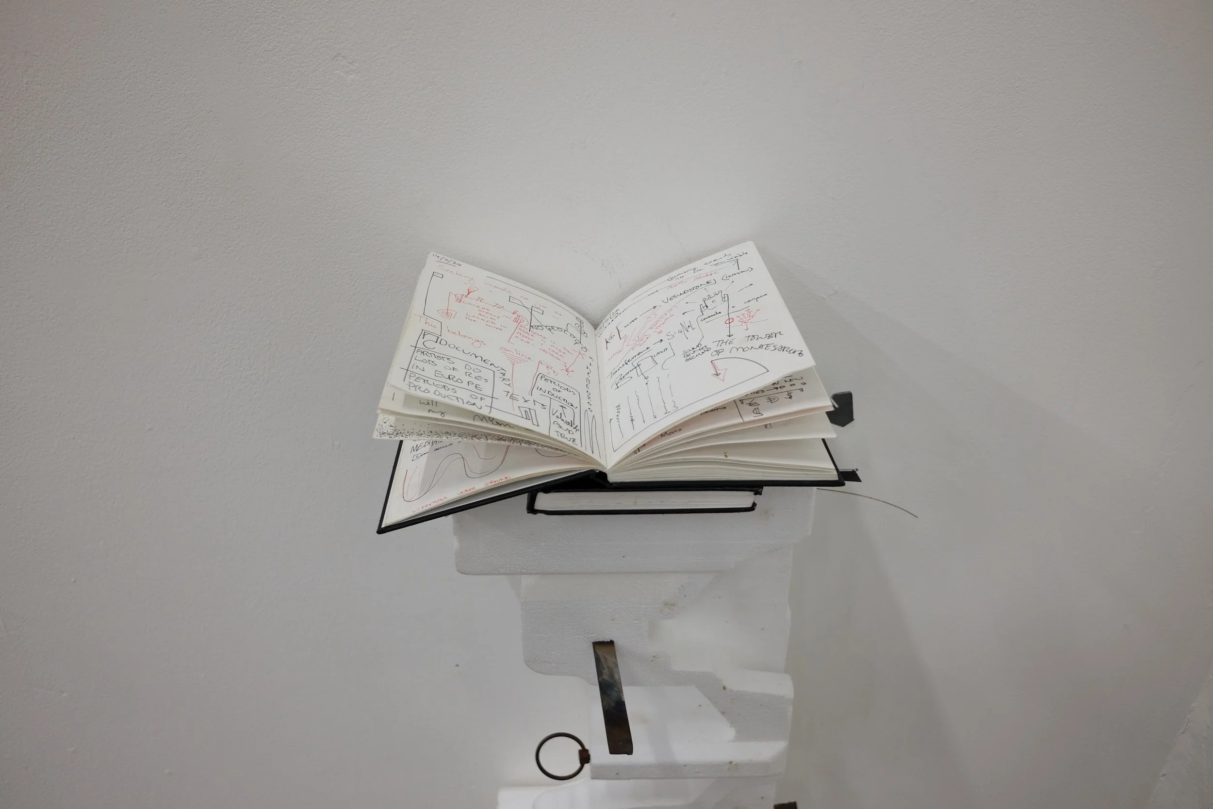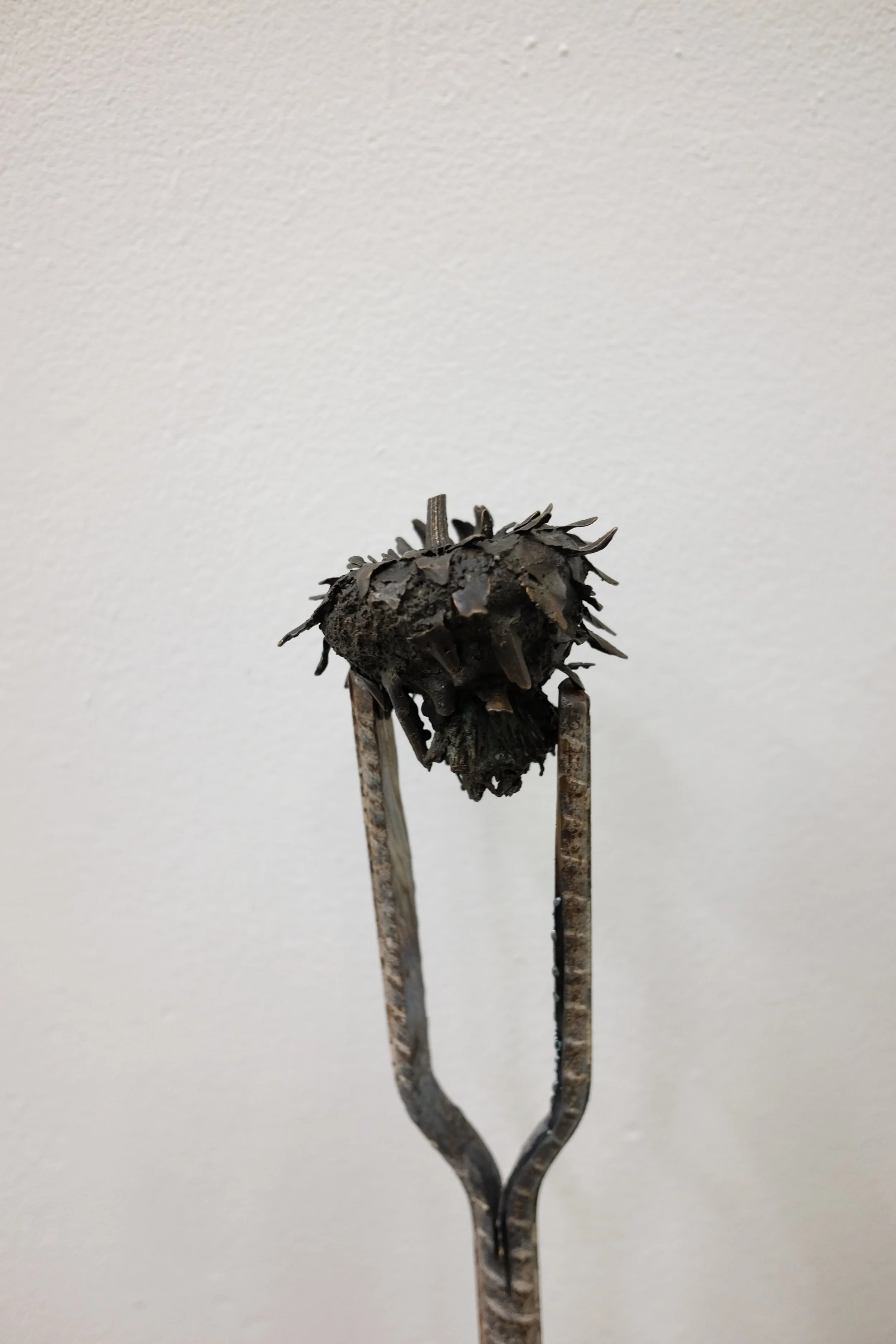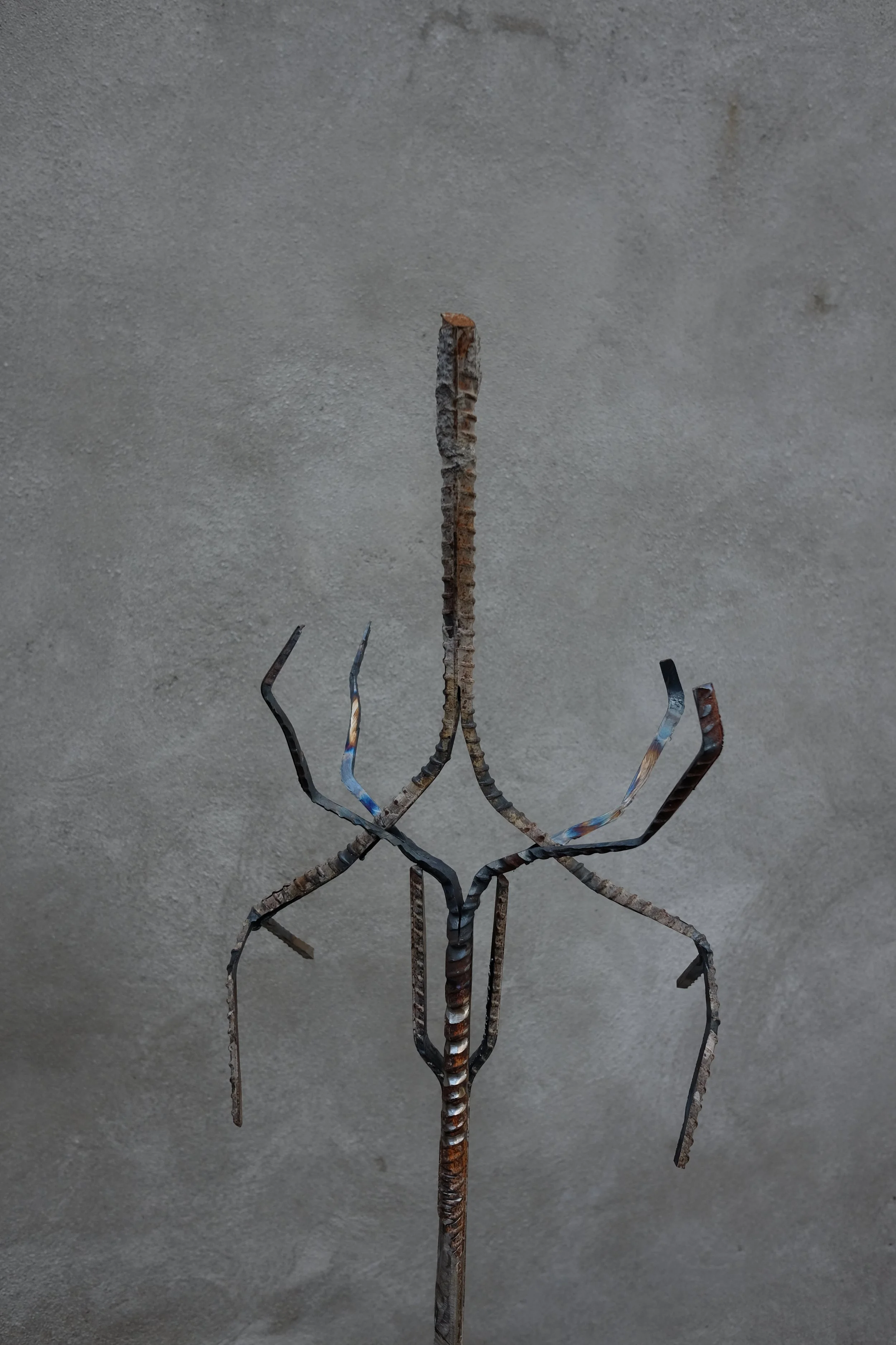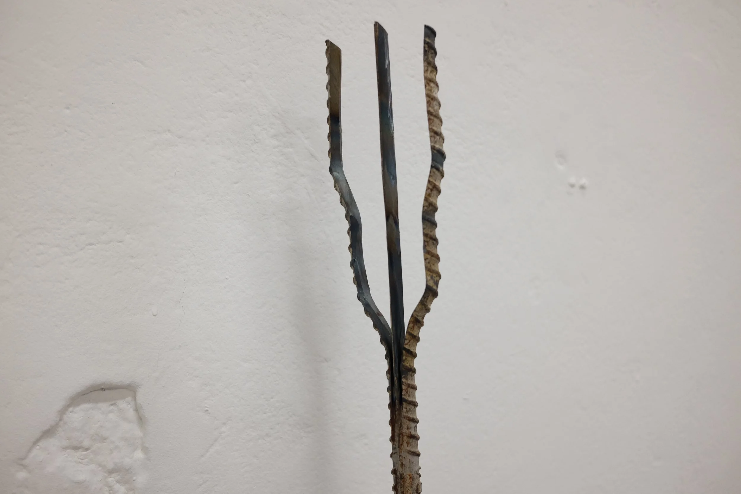 Found polystyrene, found rebar steel, found wood, Mt Vesuvius volcanic rock, pressed Irish wildflowers, bronze, gifted Bát Tràng ceramic, found glass, Nepalese singing bowl mallets.
