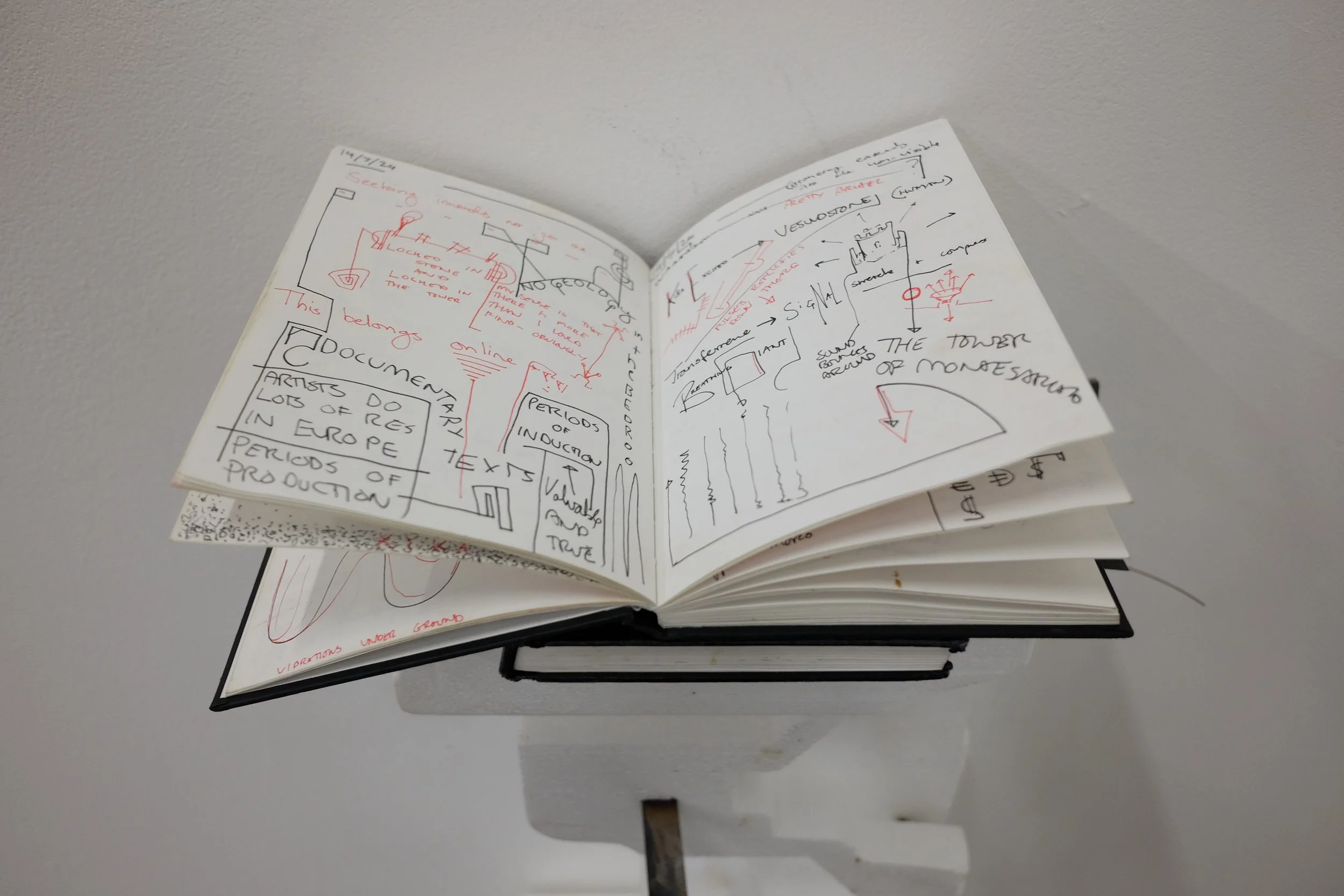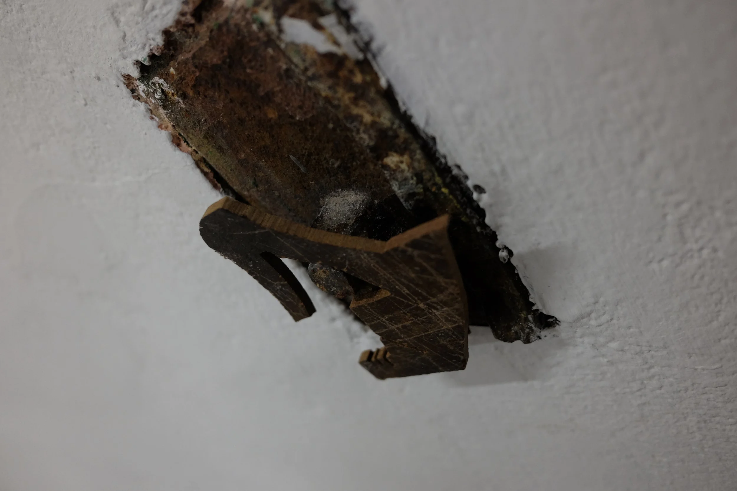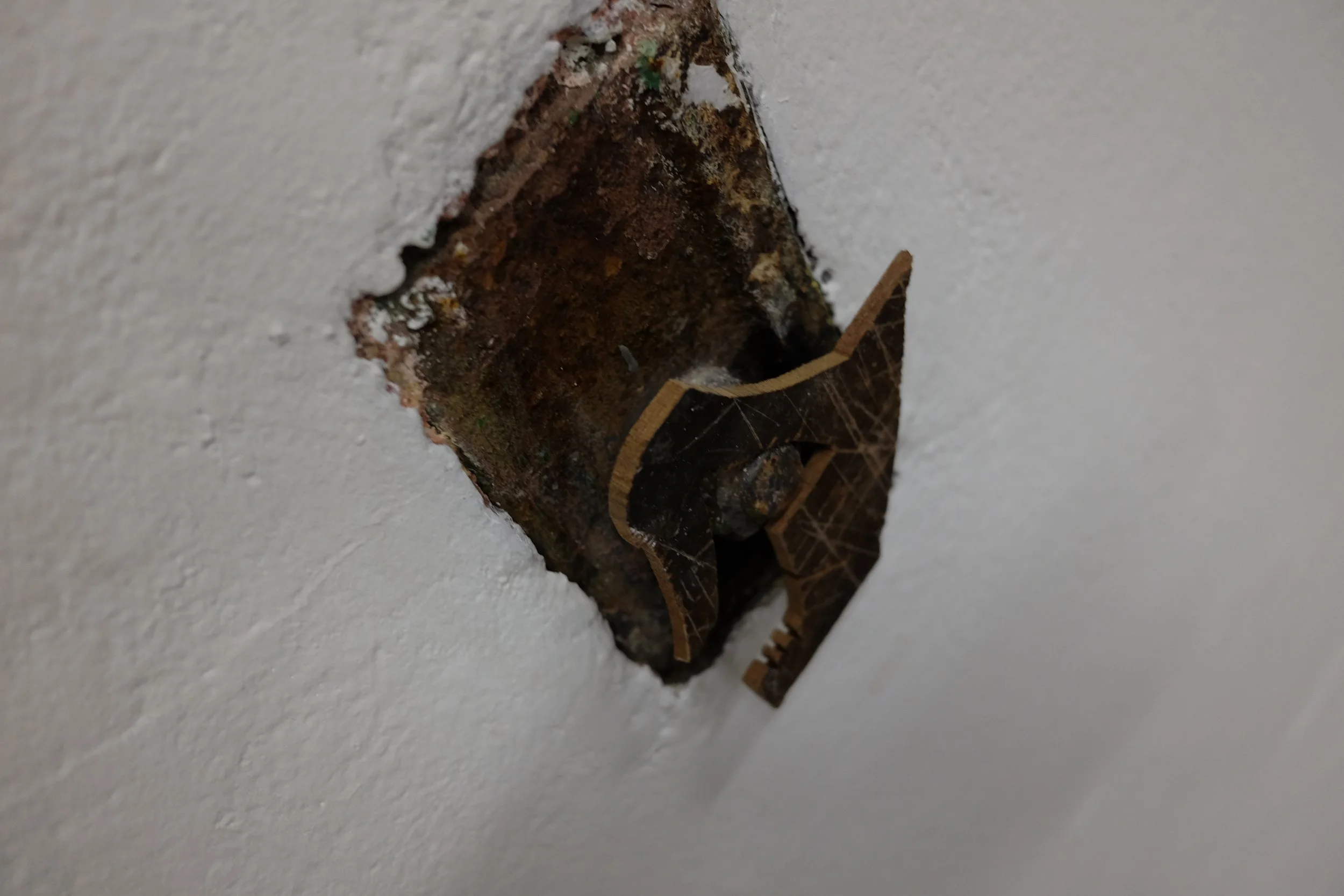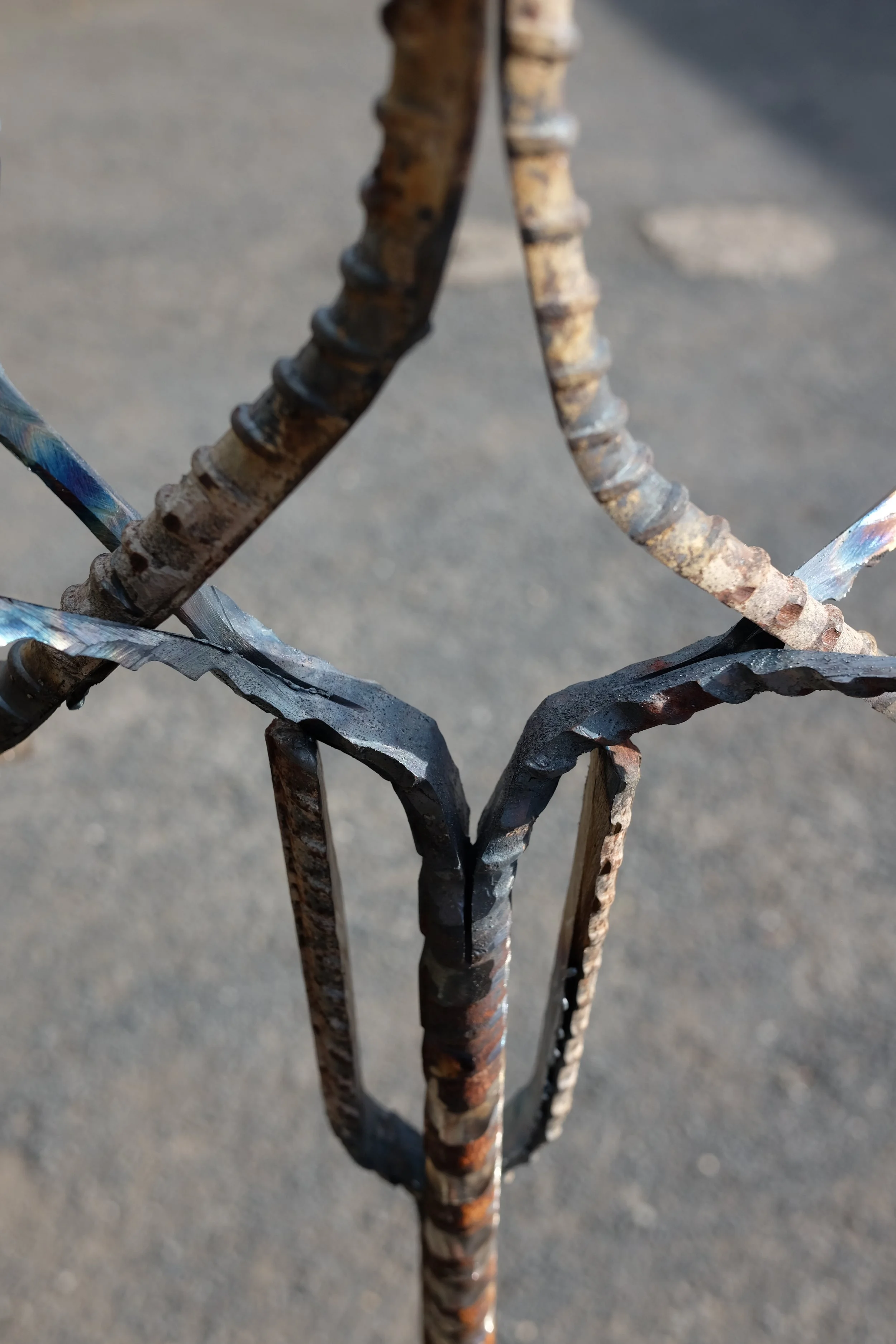 Found polystyrene, found rebar steel, found wood, Mt Vesuvius volcanic rock, pressed Irish wildflowers, bronze, gifted Bát Tràng ceramic, found glass, Nepalese singing bowl mallets.