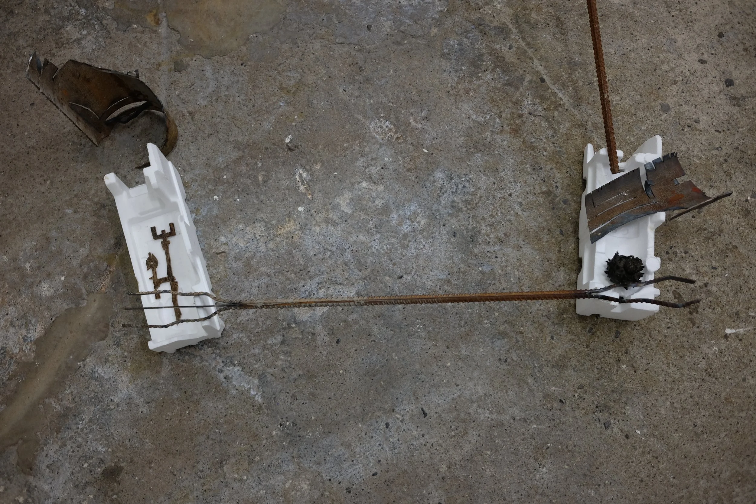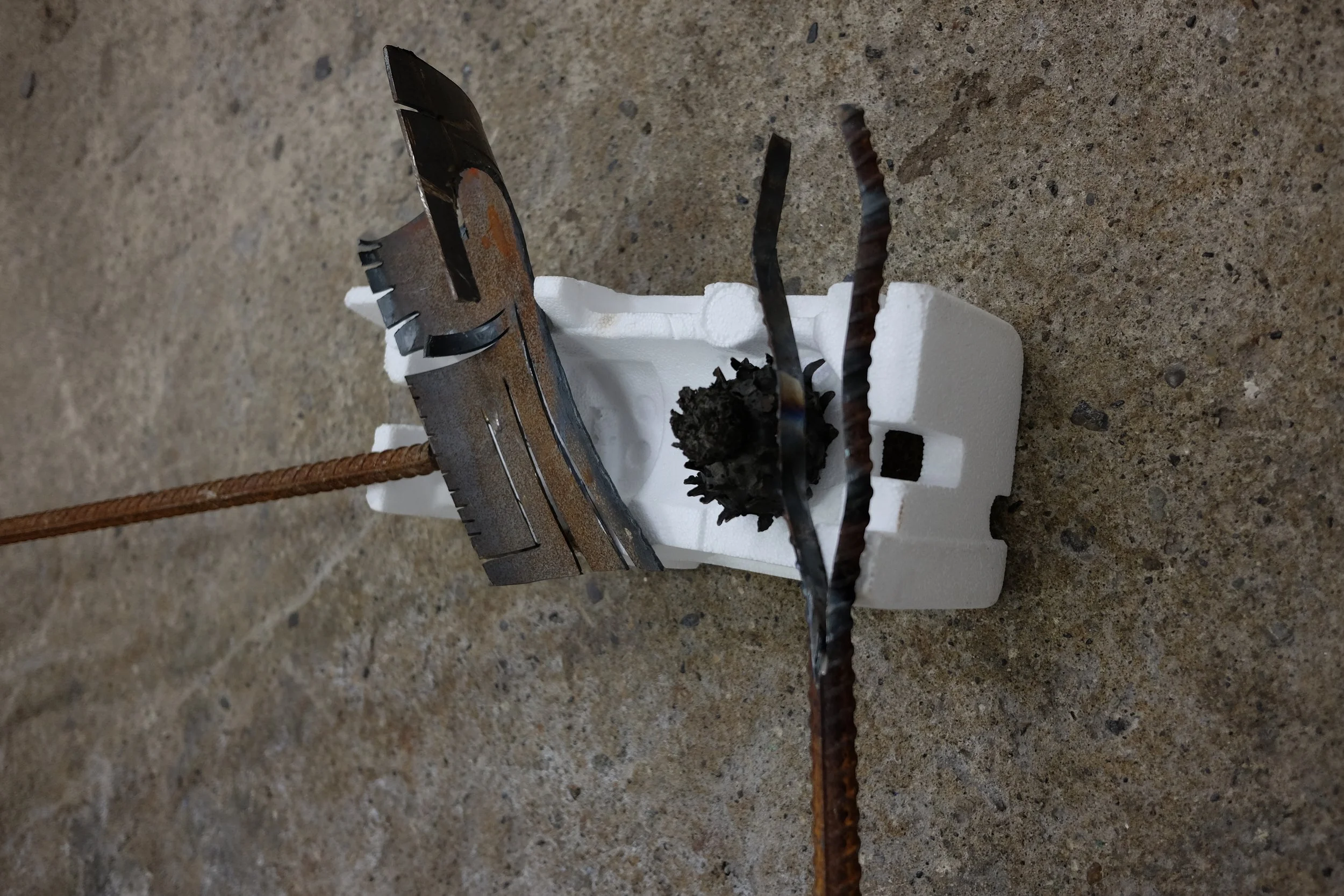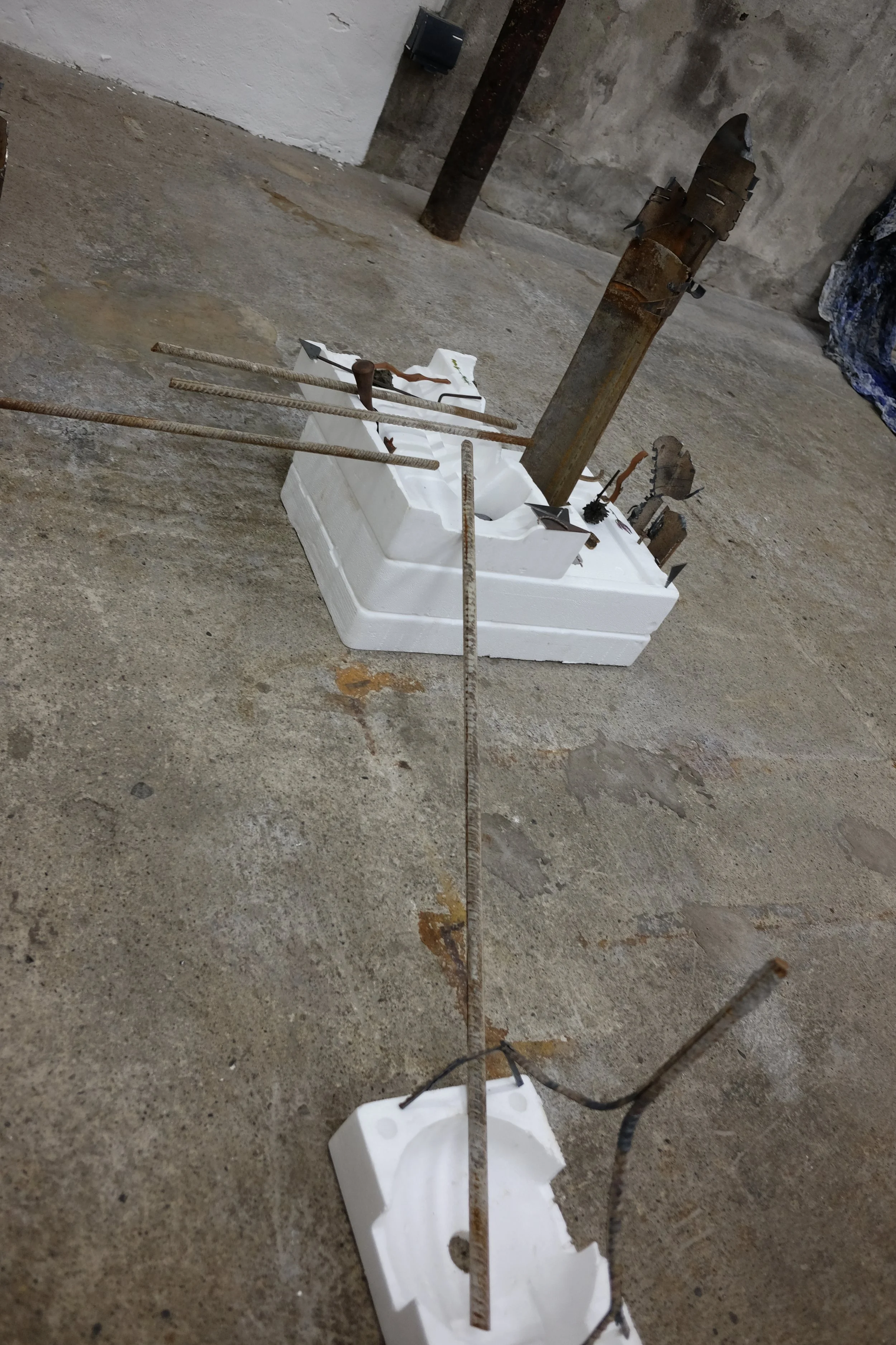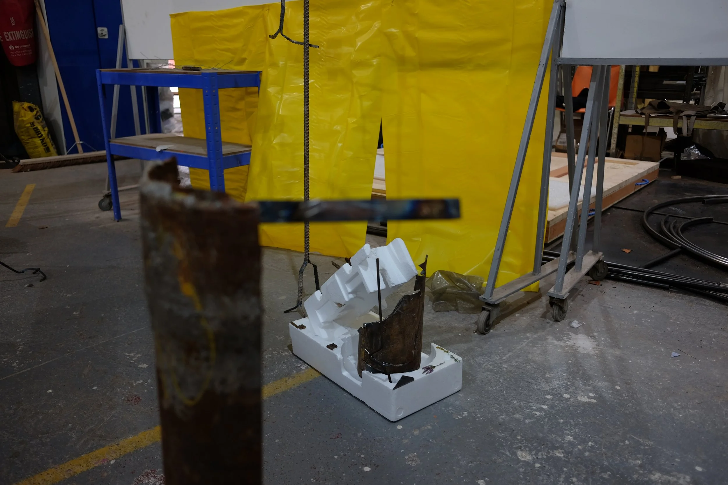 I gathered the polystyrene from around Dublin, with one piece found by my mate Grant from New Orleans. I scavenged the metal from McGoverns Metal Recycling in Rathmines, Keith and the lads were more than happy to let my dig through their stockpile. I found rebar steel, and three pipes. It’s actually a good story… maybe I’ll tell it sometime.