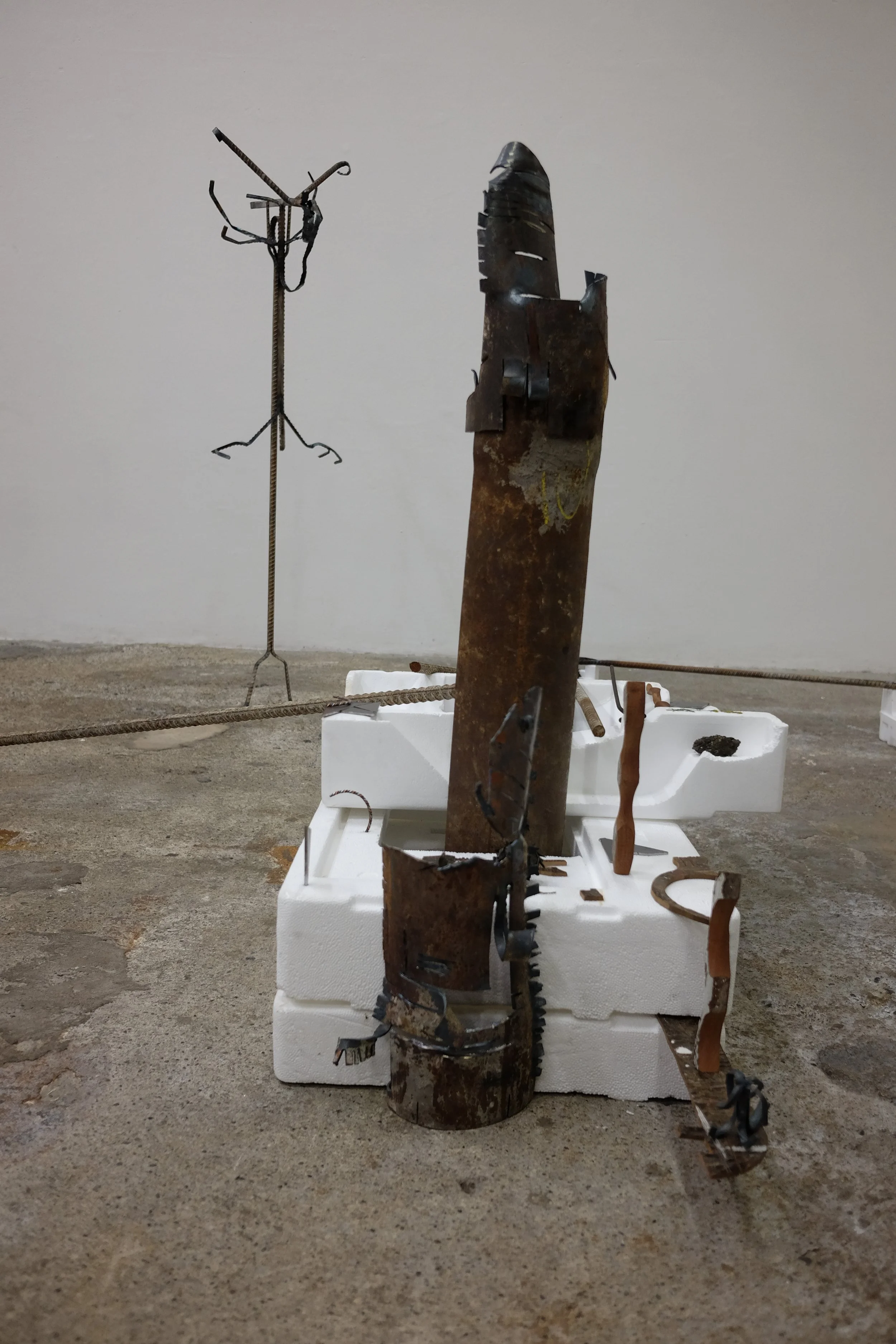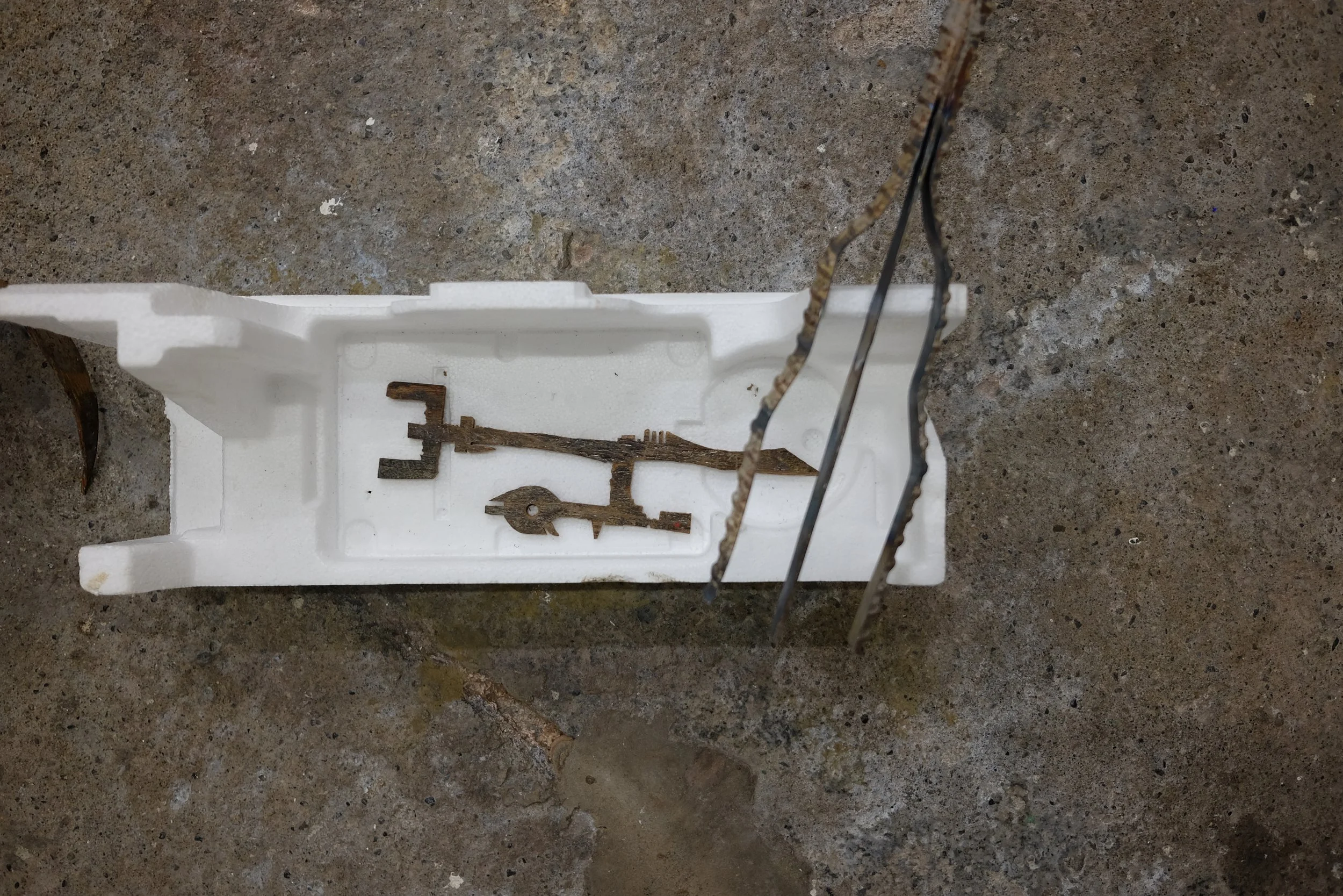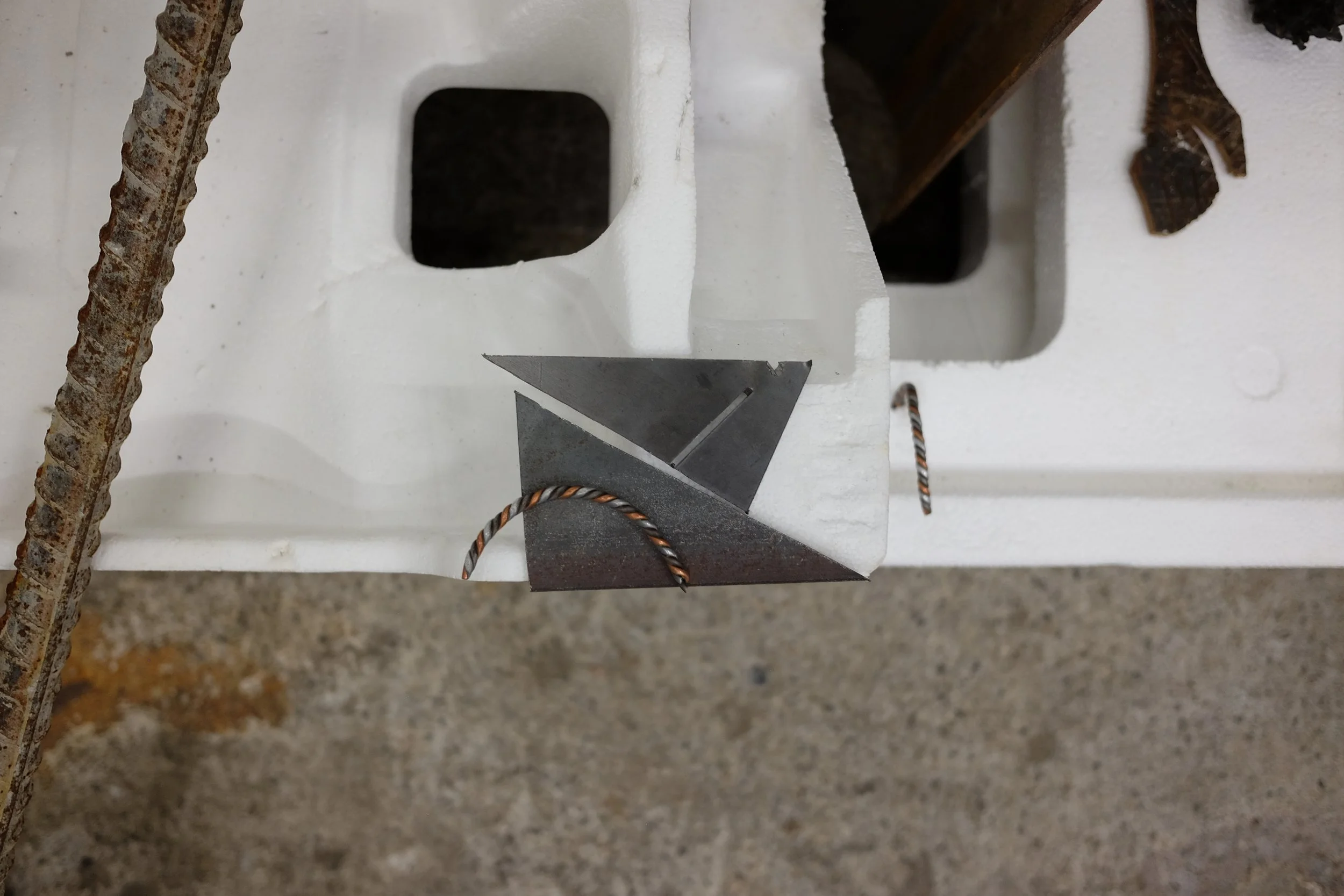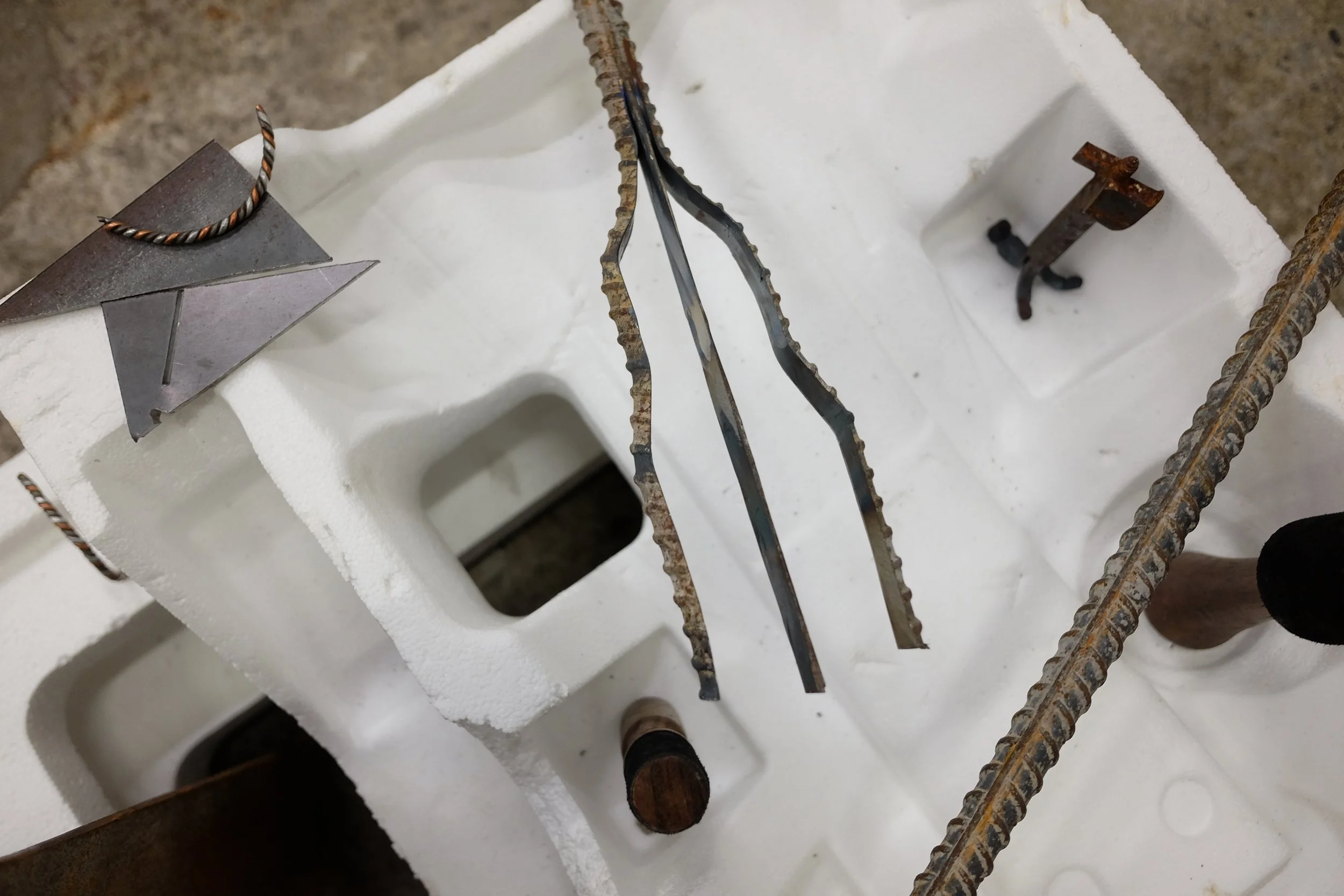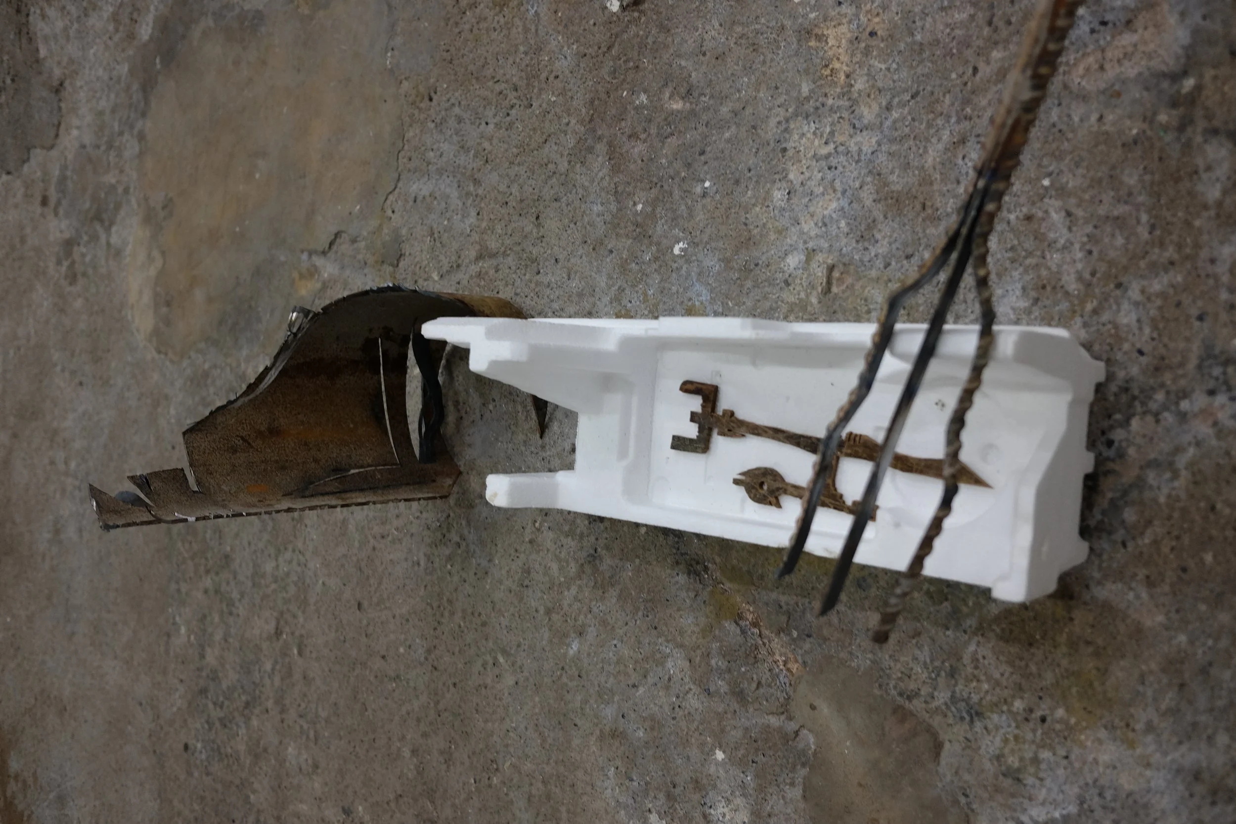I gathered the polystyrene from around Dublin, with one piece found by my mate Grant from New Orleans. I scavenged the metal from McGoverns Metal Recycling in Rathmines, Keith and the lads were more than happy to let my dig through their stockpile. I found rebar steel, and three pipes. It’s actually a good story… maybe I’ll tell it sometime.
