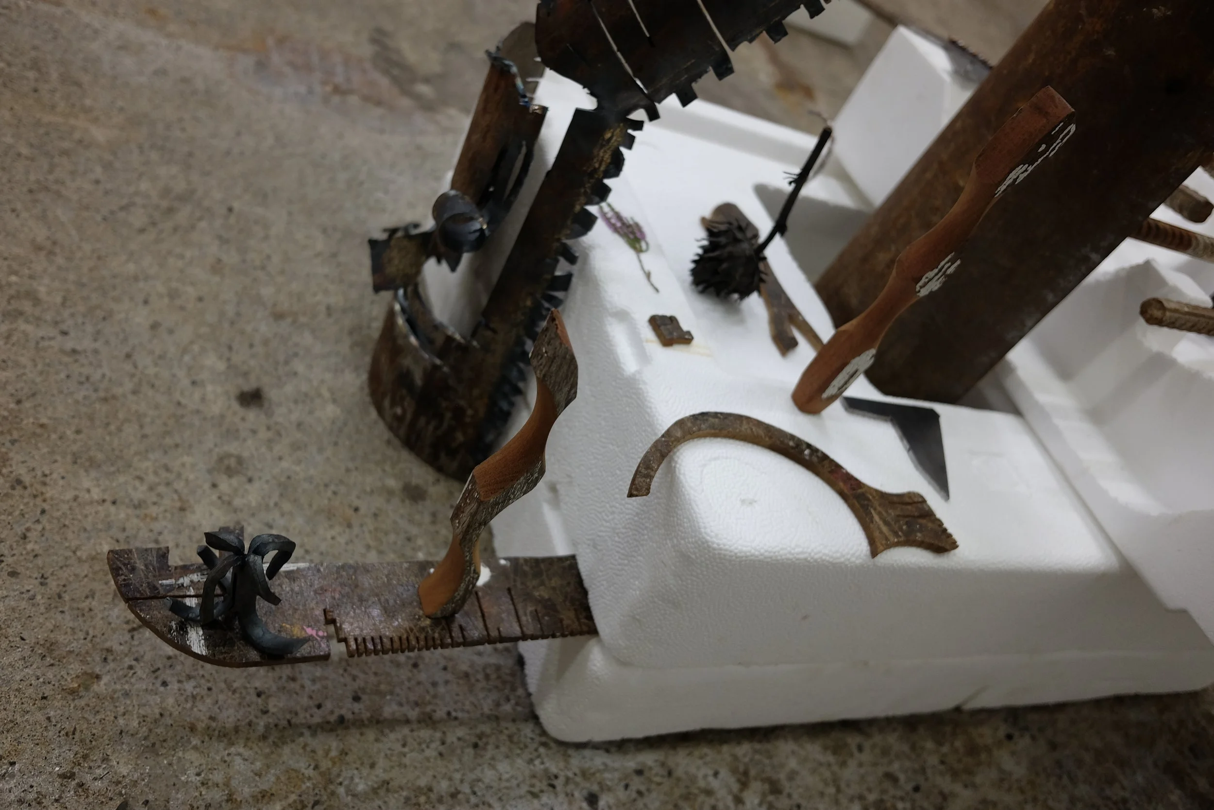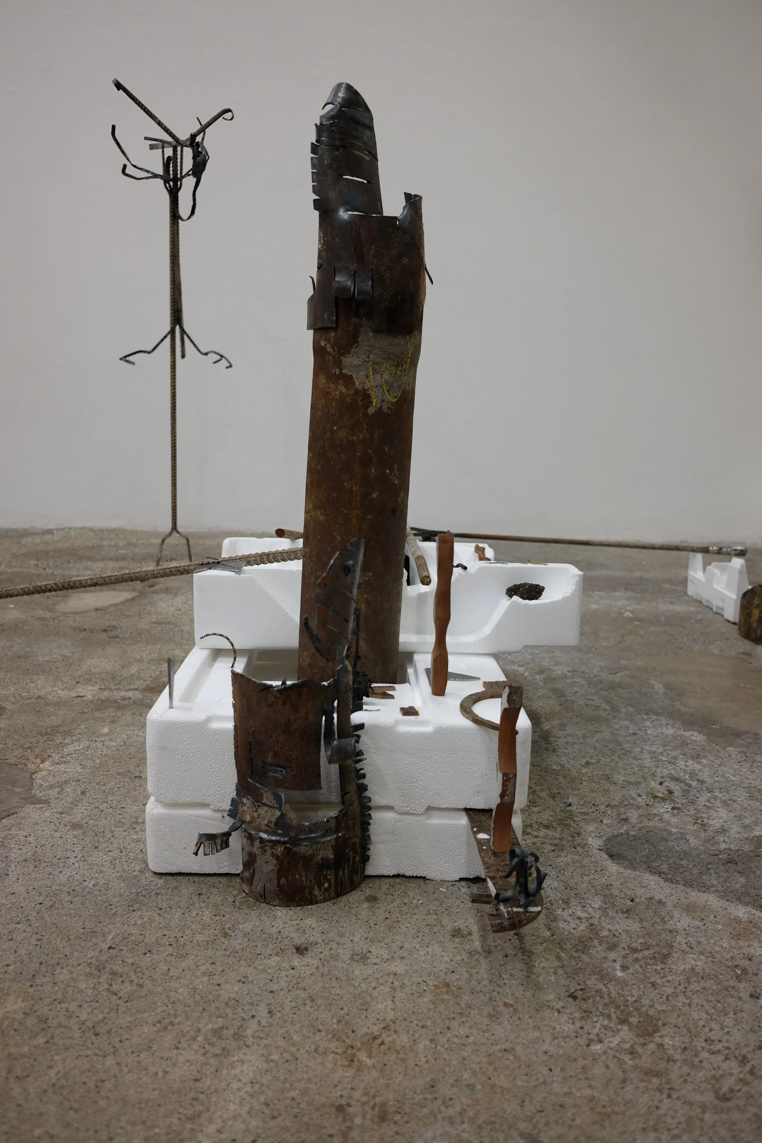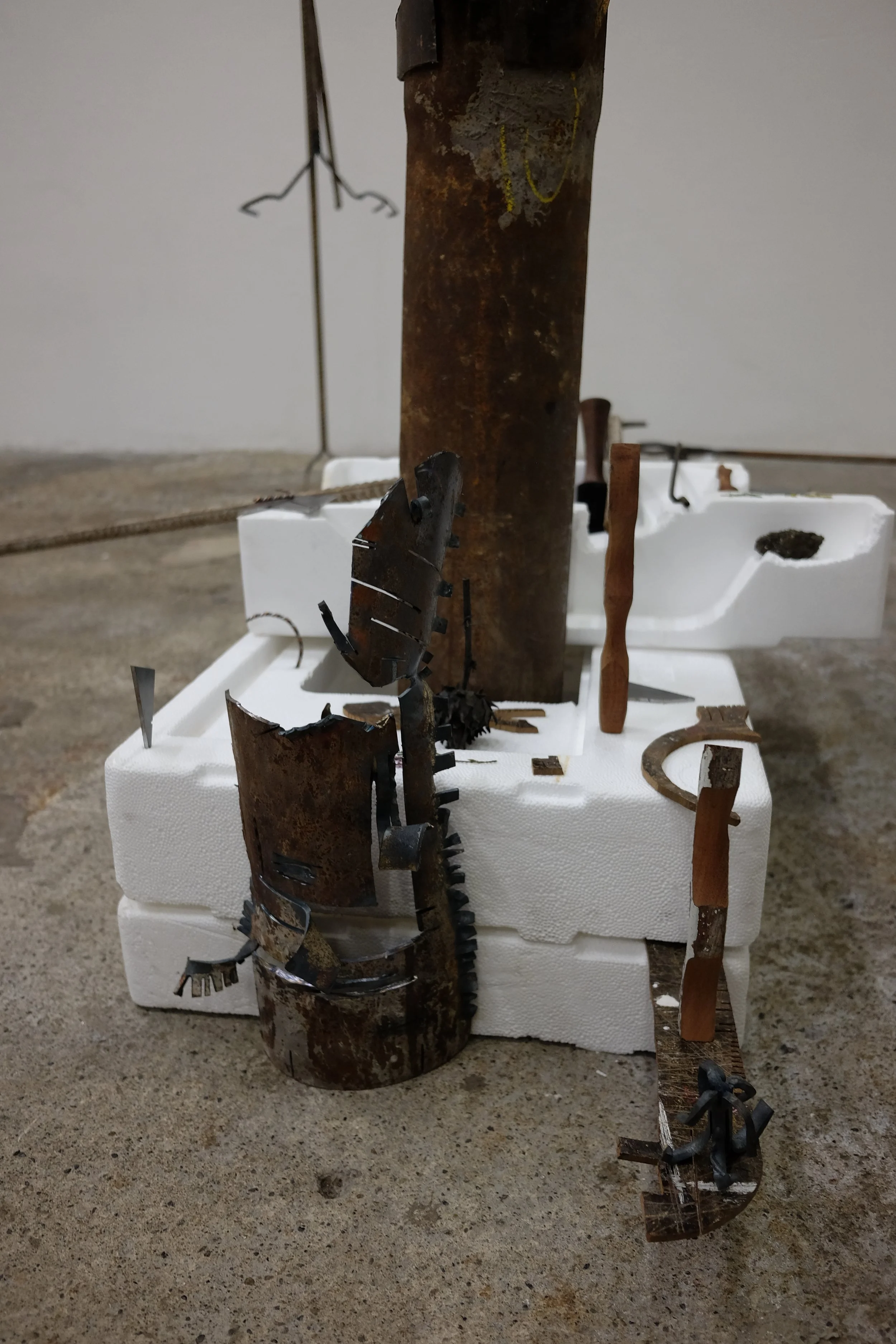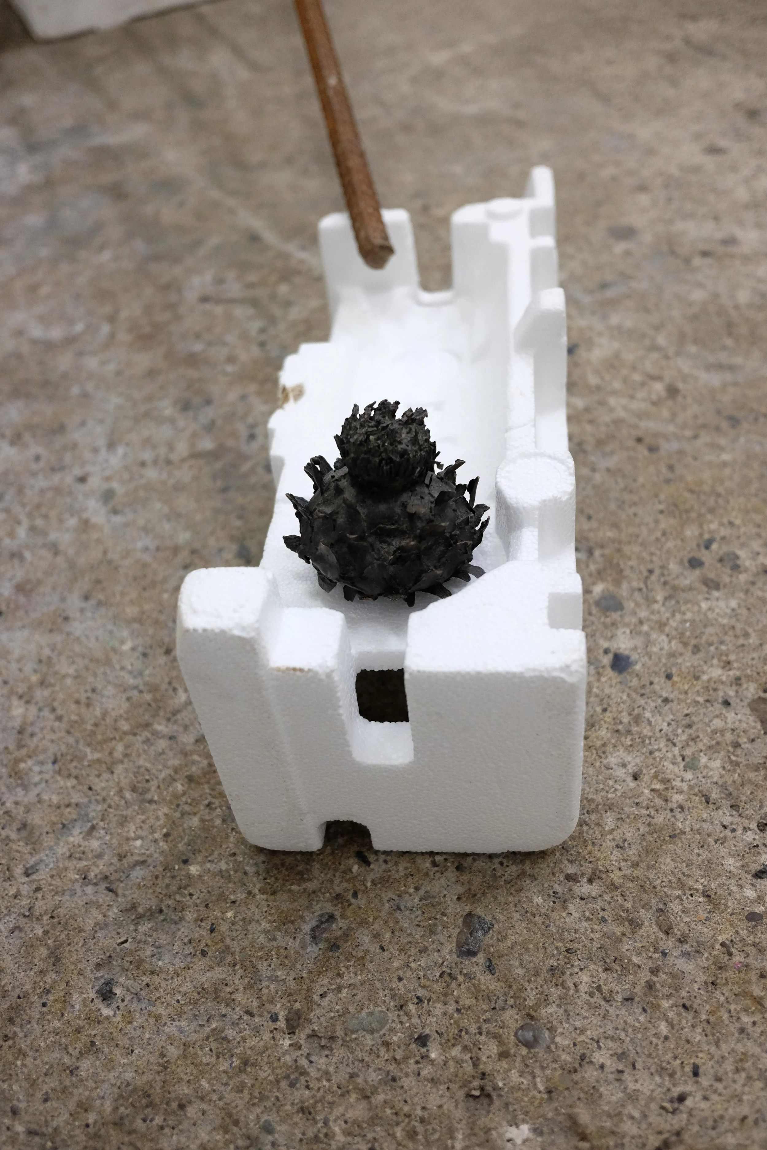 I gathered the polystyrene from around Dublin, with one piece found by my mate Grant from New Orleans. I scavenged the metal from McGoverns Metal Recycling in Rathmines, Keith and the lads were more than happy to let my dig through their stockpile. I found rebar steel, and three pipes. It’s actually a good story… maybe I’ll tell it sometime.
