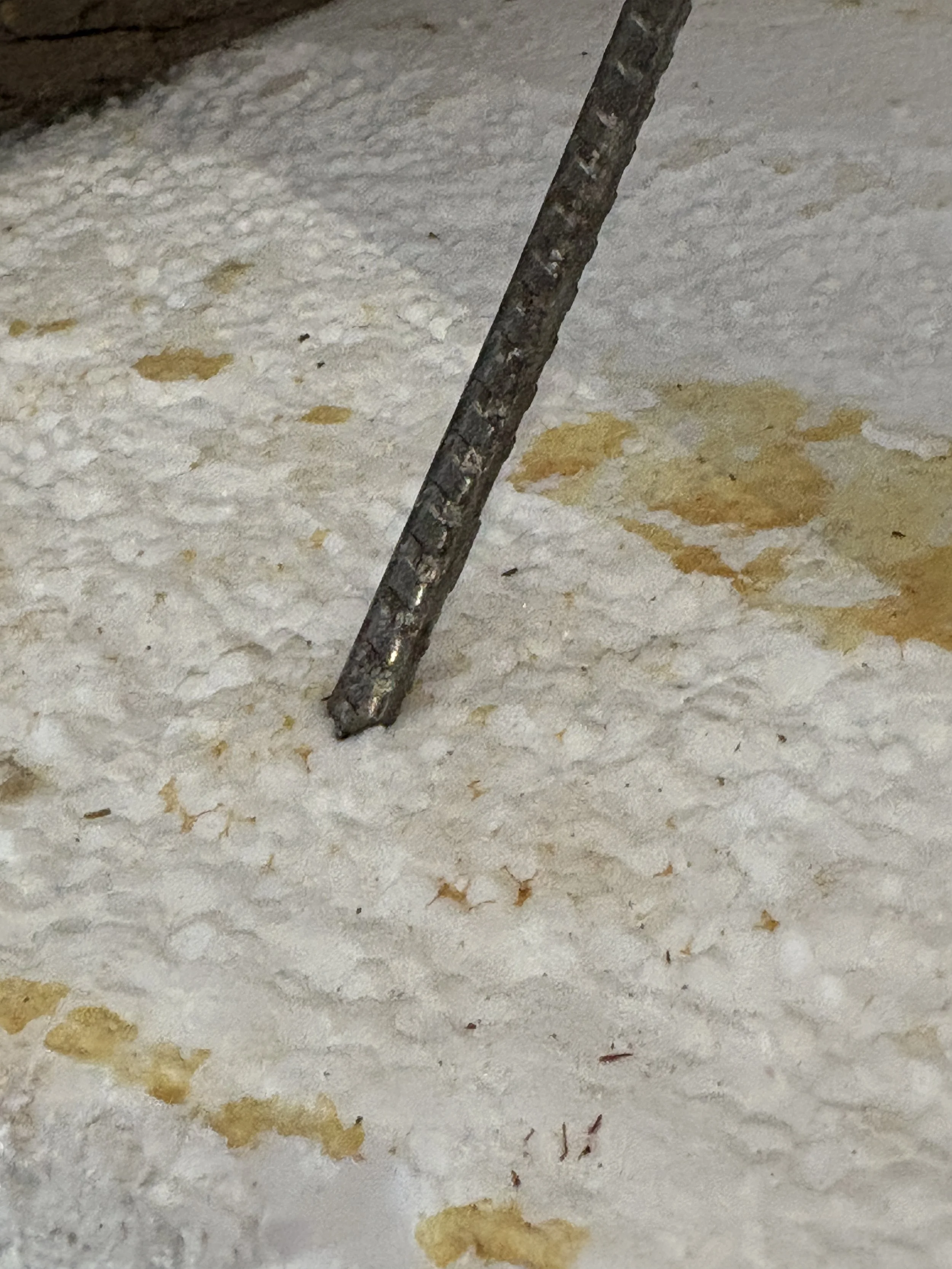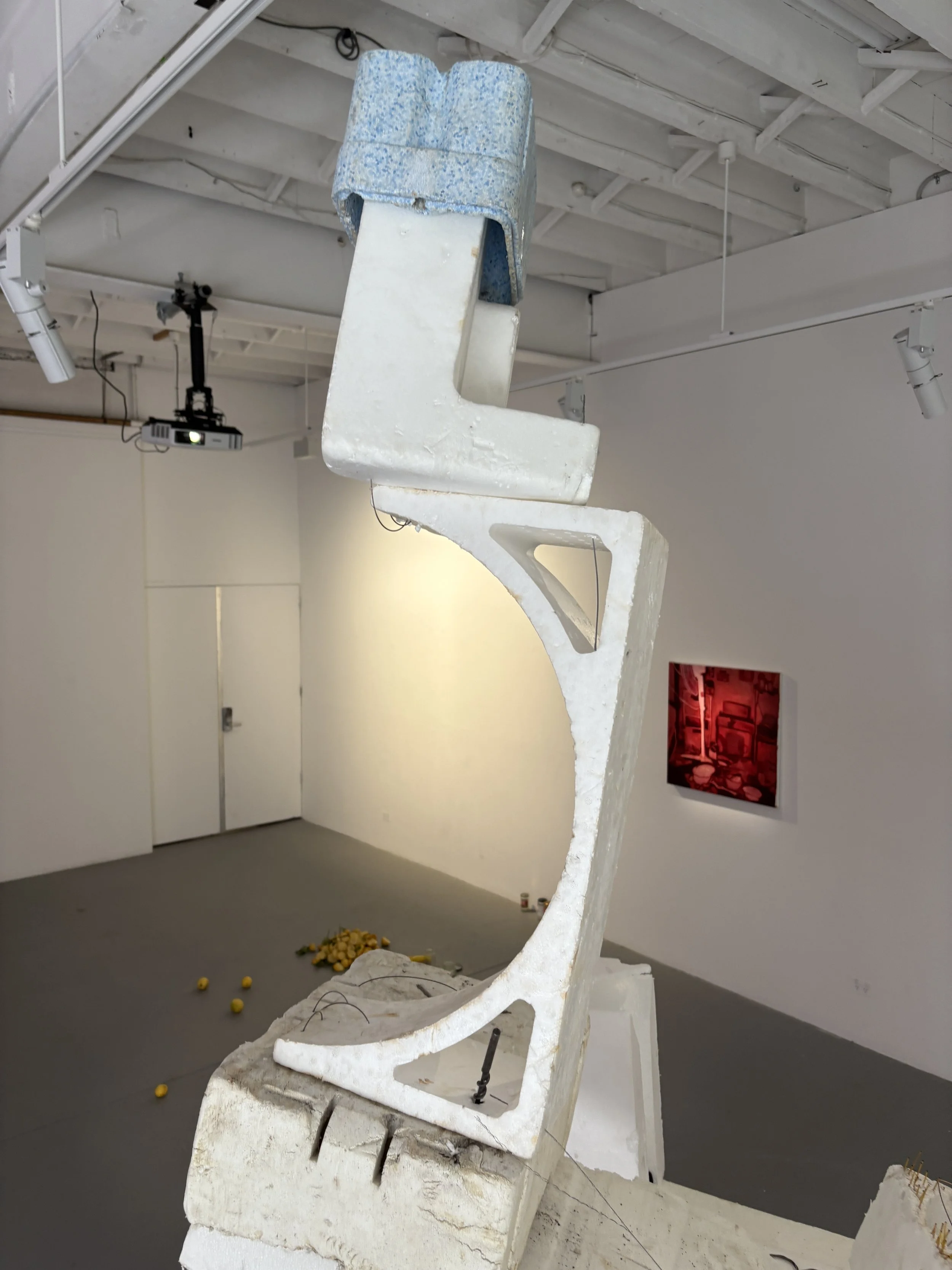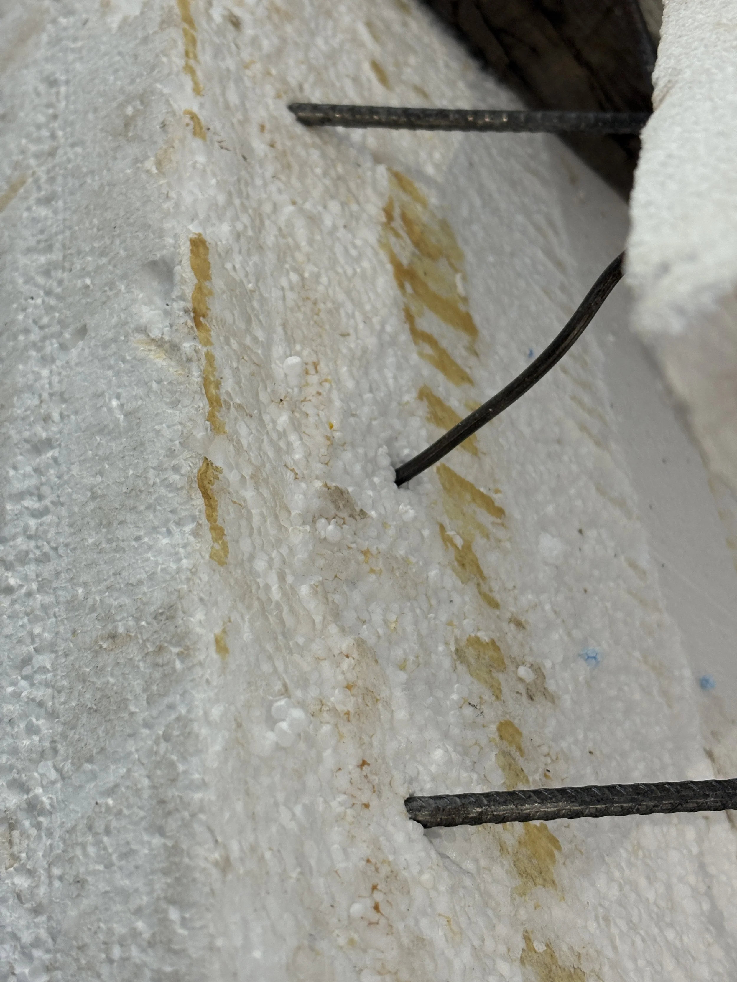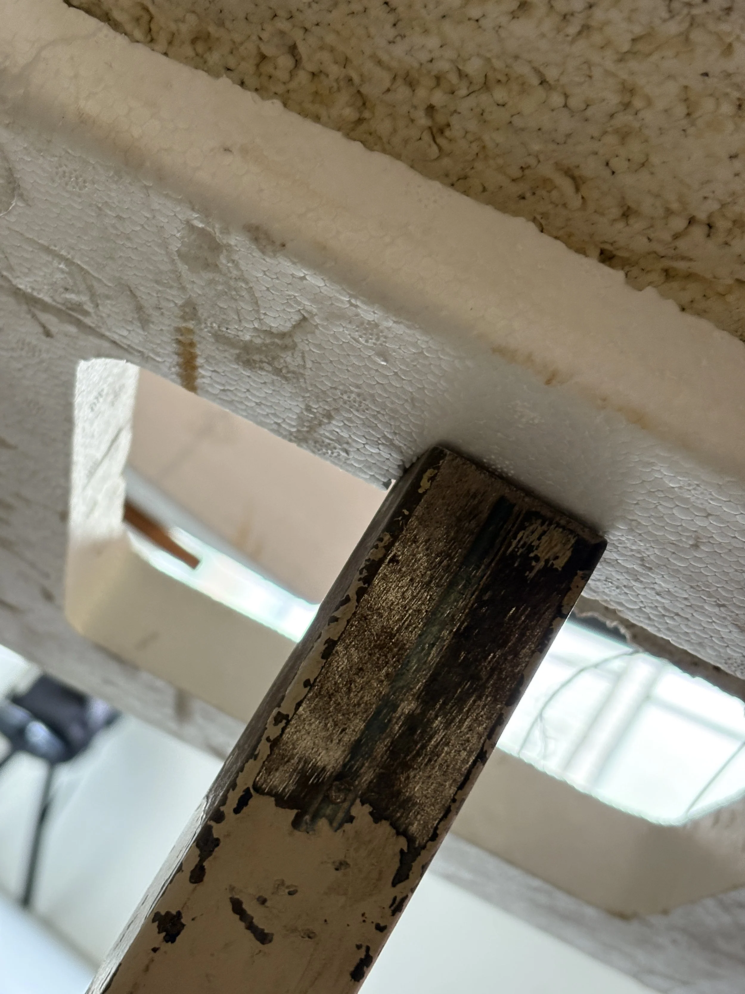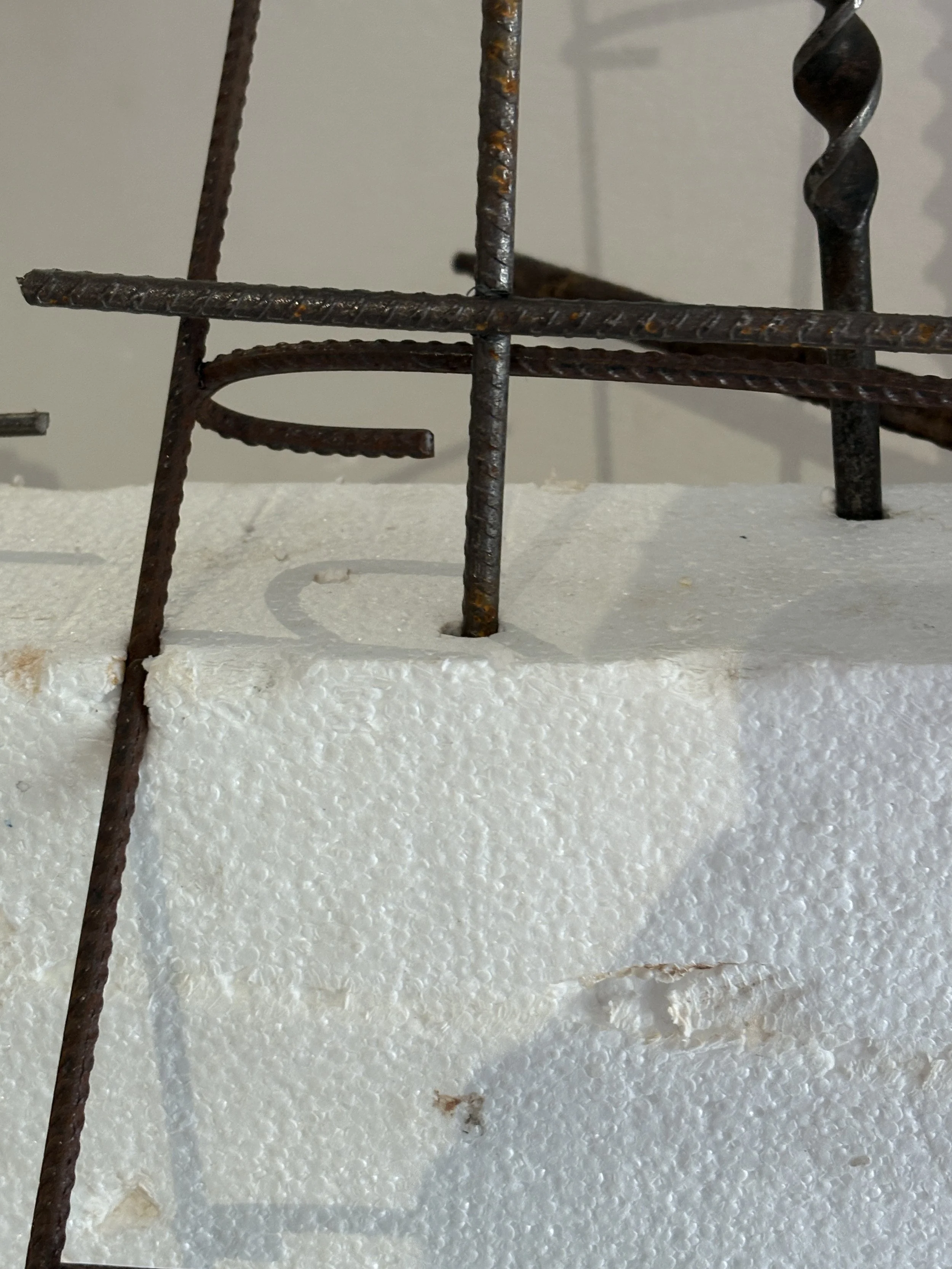I dig dig dig into the ground and I find golf balls, bits of broken glass and what seems to be a mix of sand and microplastics. I don't know what year it is. I gather this polystyrene and I stack it. I wrap it with wire, I twist it all around, I wring out my hands with confusion and resolve to learn more. I learn more each time I speak with her, when I commune with her divine grace, when he reaches towards me with joy and squeezes. There are spirits in this plastic. Benzene, flame retardants. Holy things. Strange things. I live a little bit more and observe the trail I leave behind. I trace my fingers through the muck and dust and leave remnants behind. I am a remnant, I am left behind, borrowing from the giants and tucking myself in using their big smelly socks.