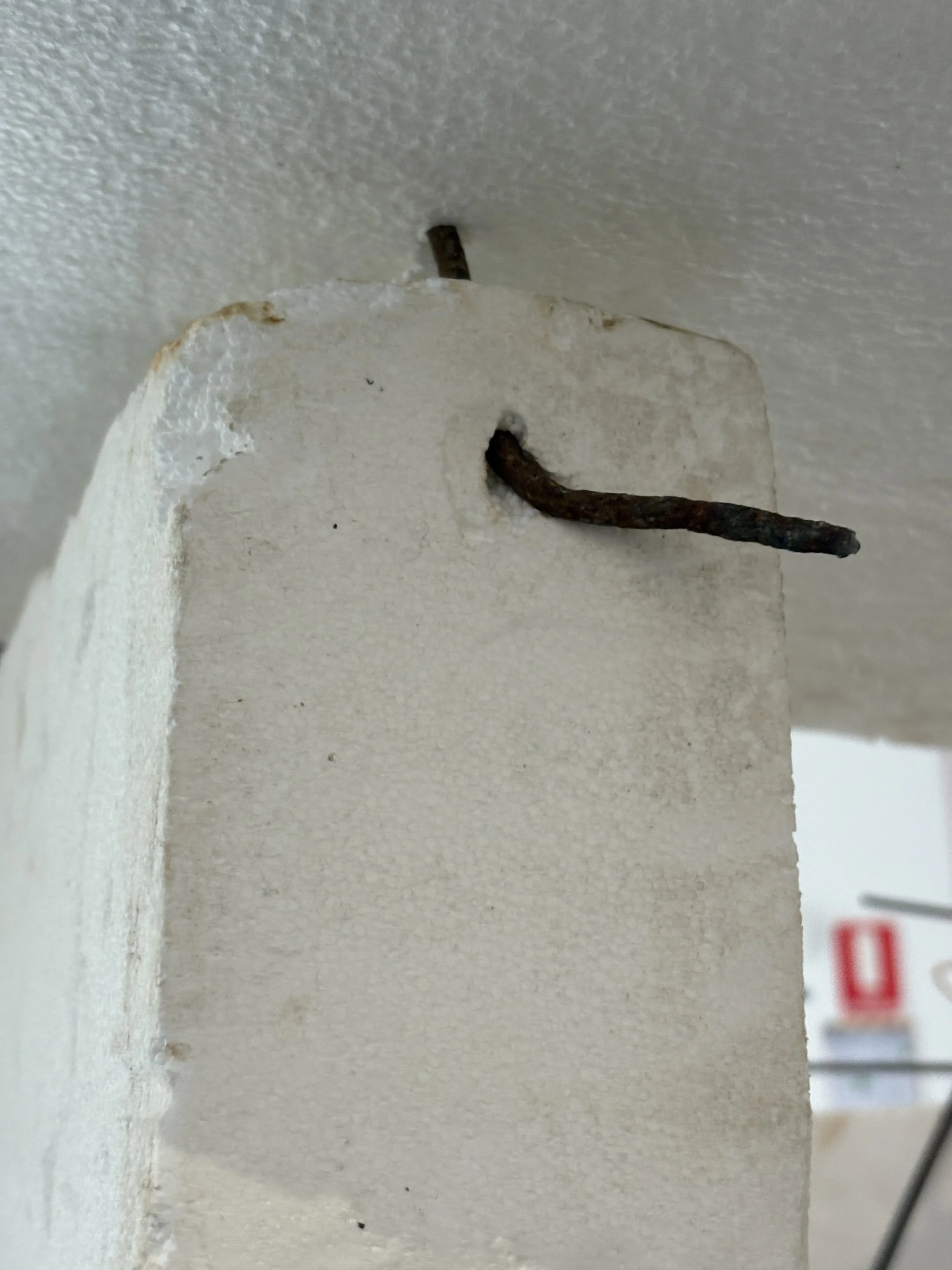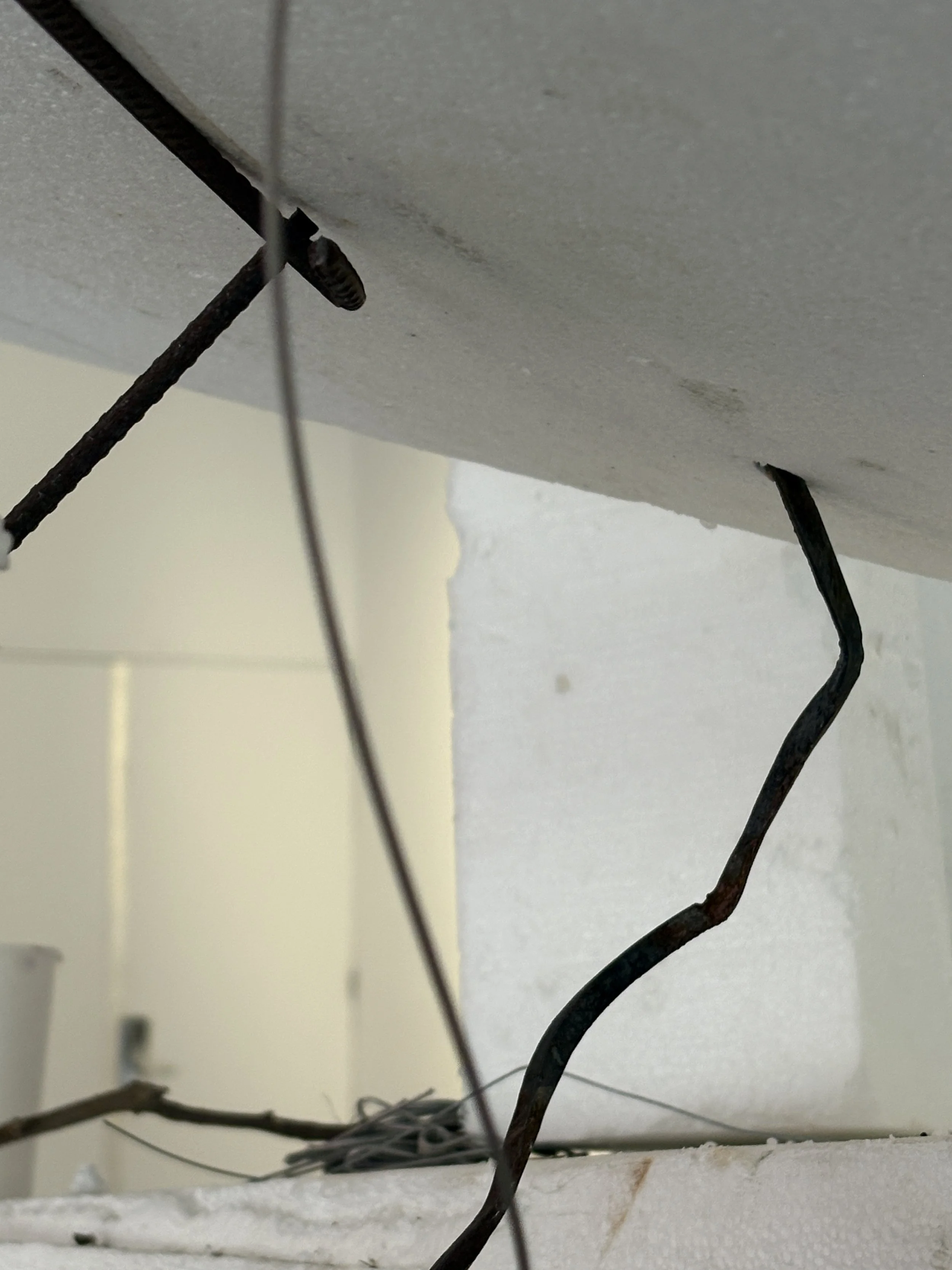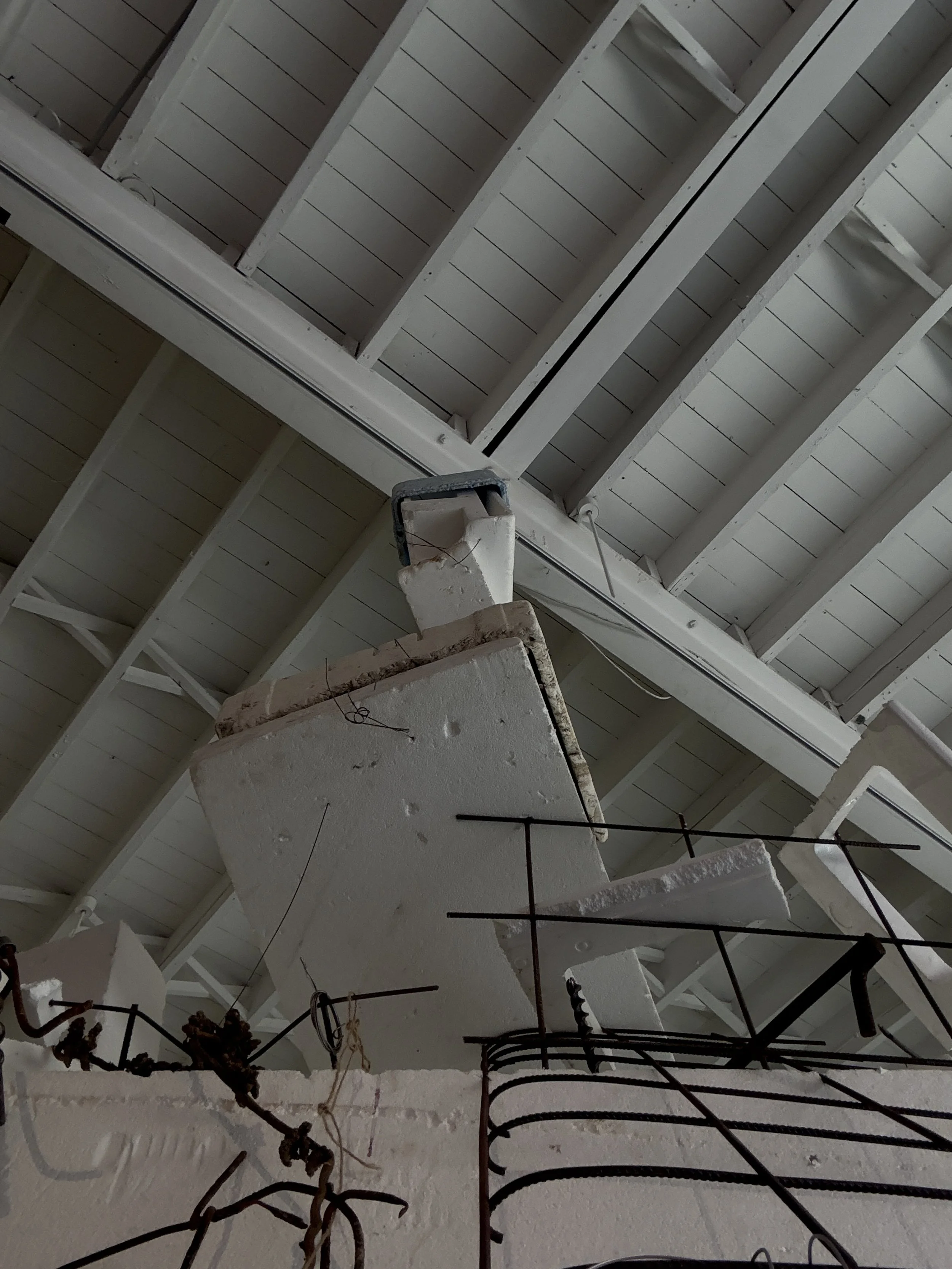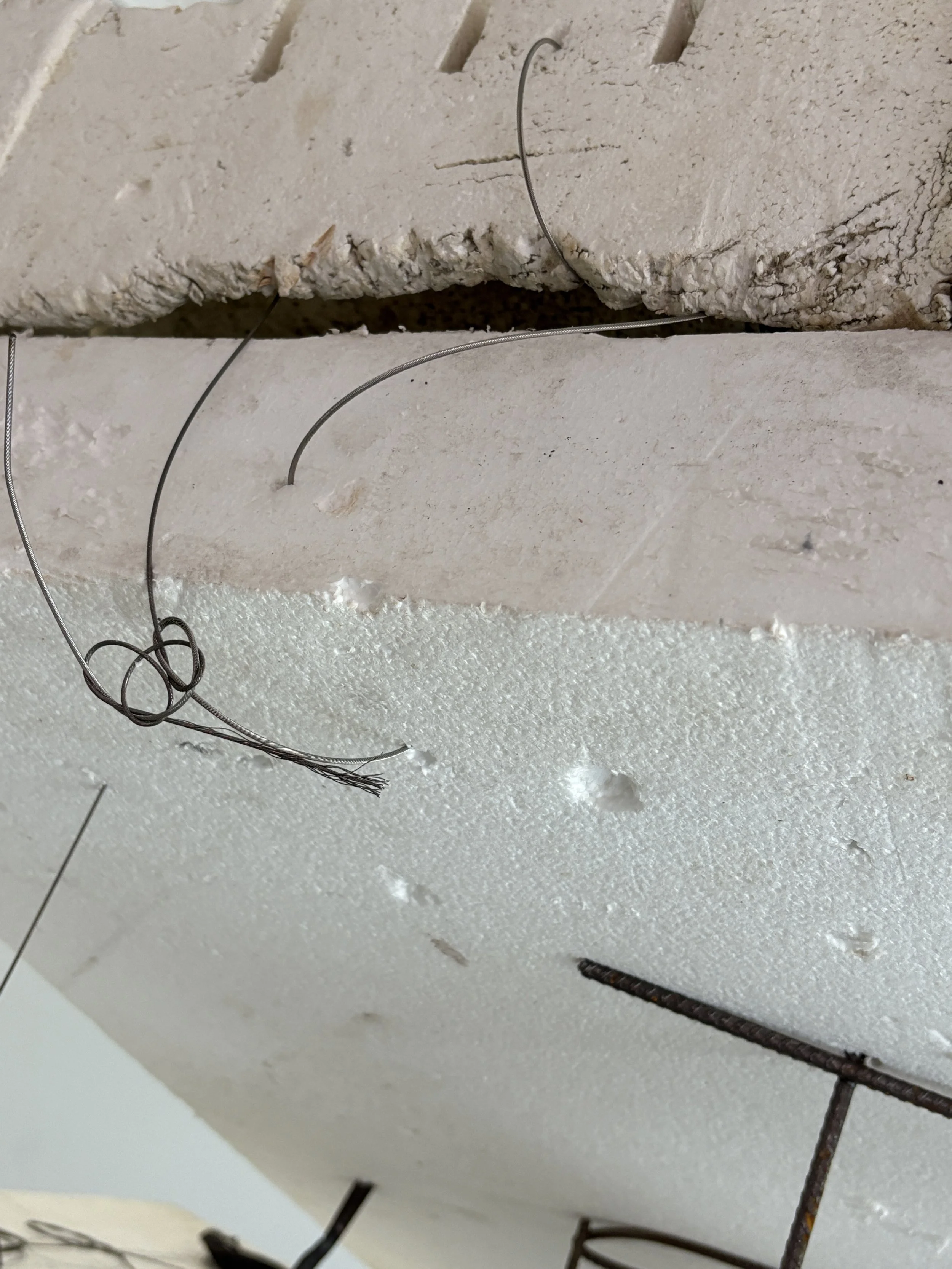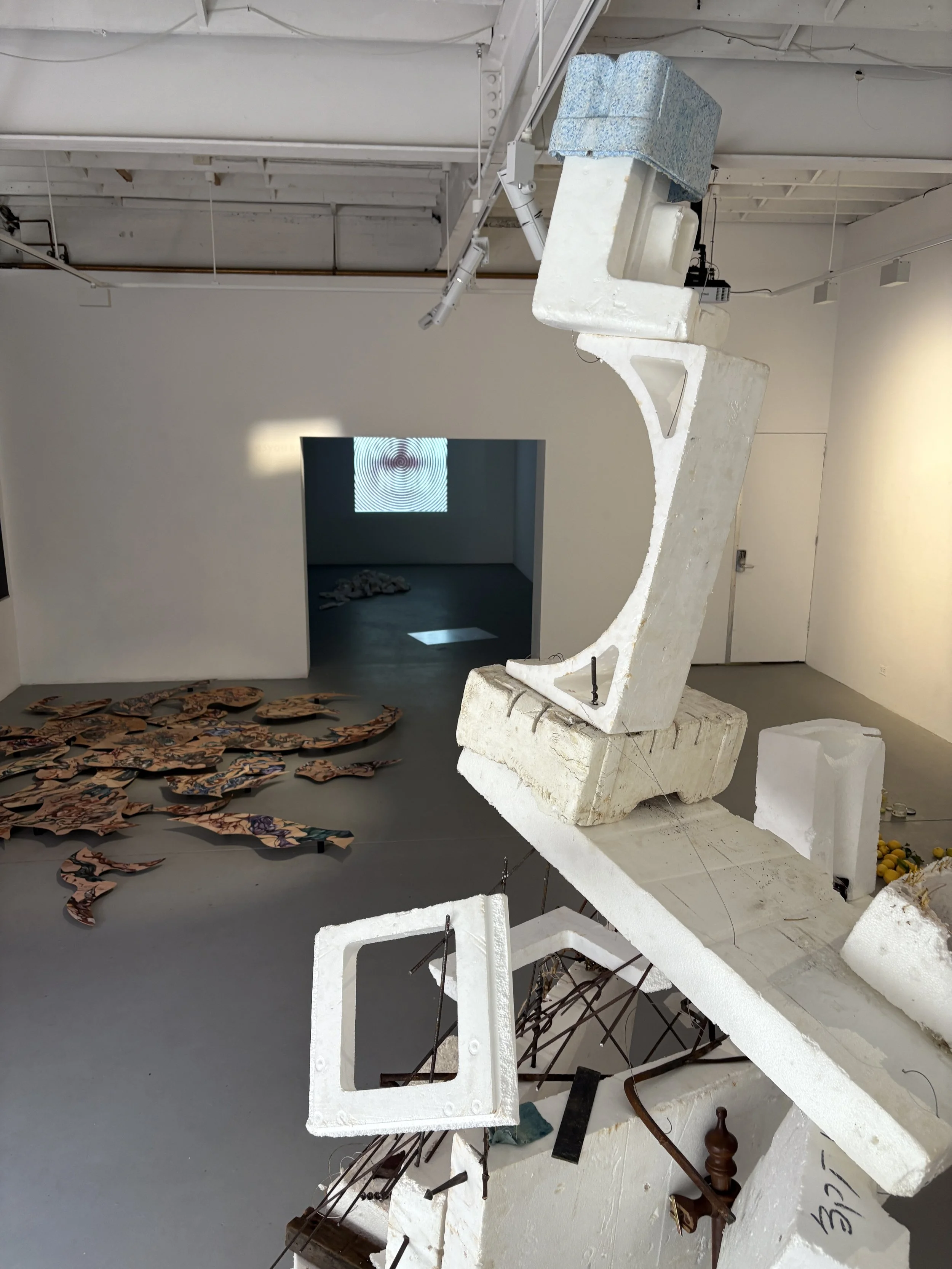 I dig dig dig into the ground and I find golf balls, bits of broken glass and what seems to be a mix of sand and microplastics. I don't know what year it is. I gather this polystyrene and I stack it. I wrap it with wire, I twist it all around, I wring out my hands with confusion and resolve to learn more. I learn more each time I speak with her, when I commune with her divine grace, when he reaches towards me with joy and squeezes. There are spirits in this plastic. Benzene, flame retardants. Holy things. Strange things. I live a little bit more and observe the trail I leave behind. I trace my fingers through the muck and dust and leave remnants behind. I am a remnant, I am left behind, borrowing from the giants and tucking myself in using their big smelly socks.