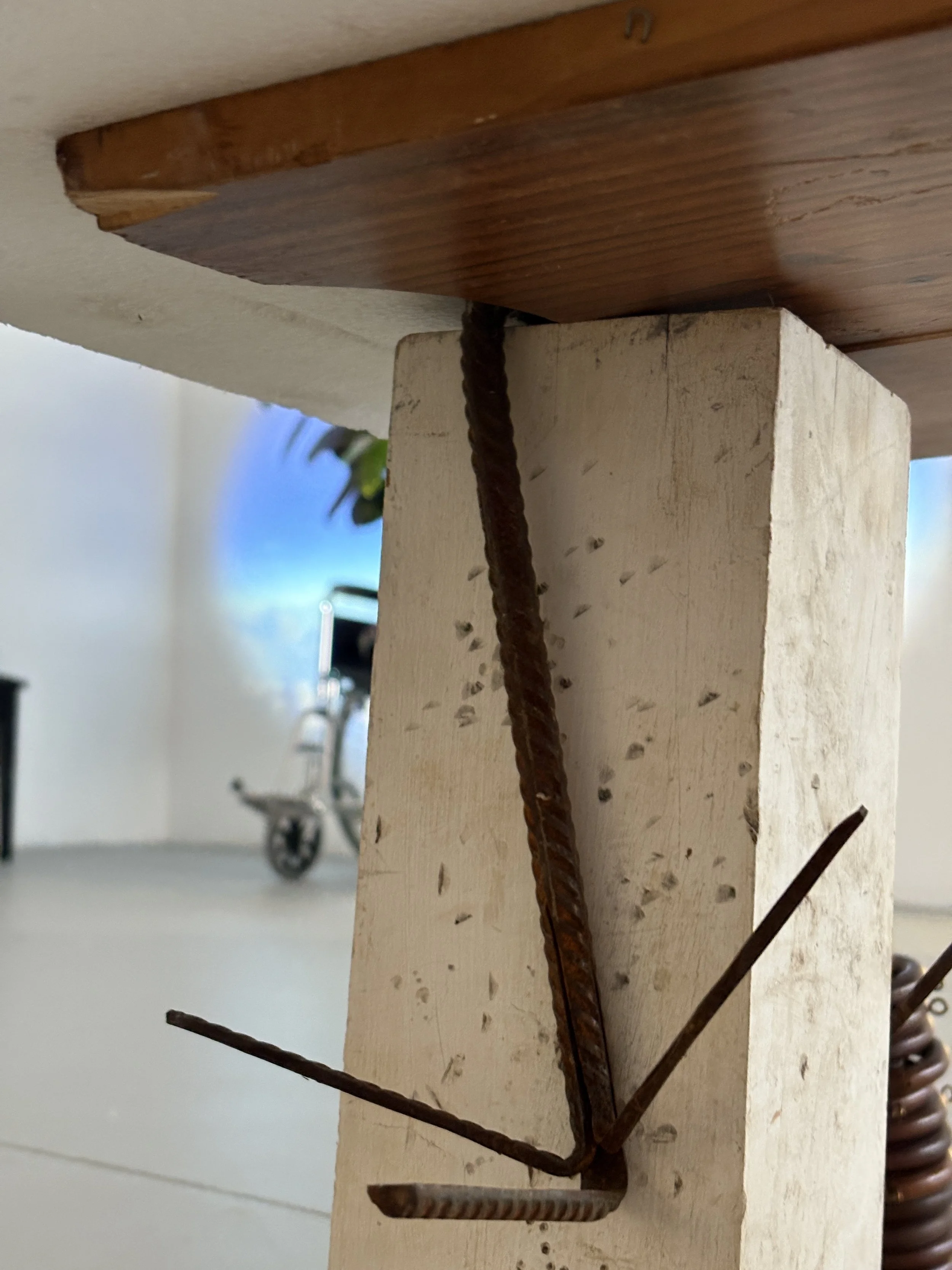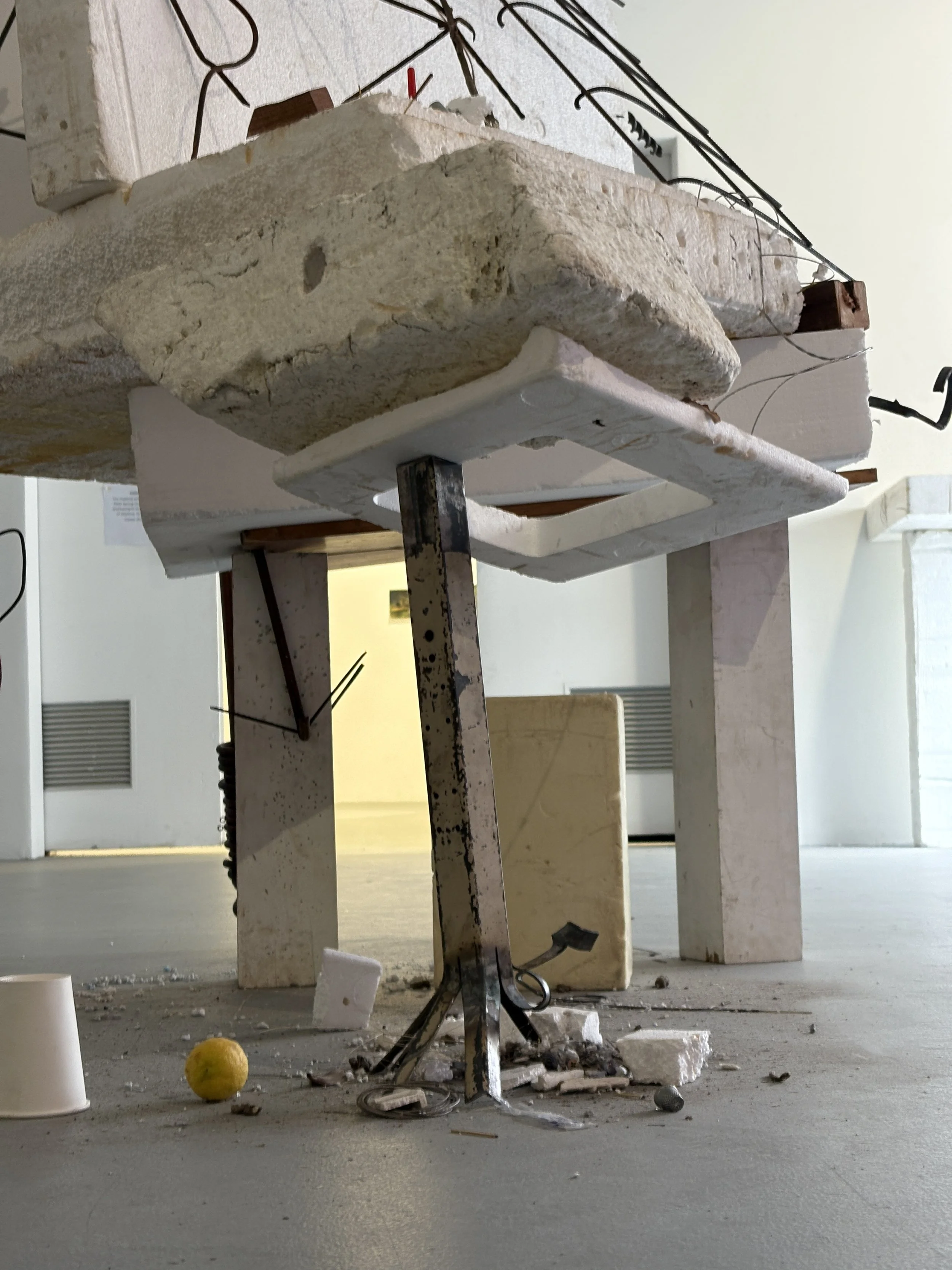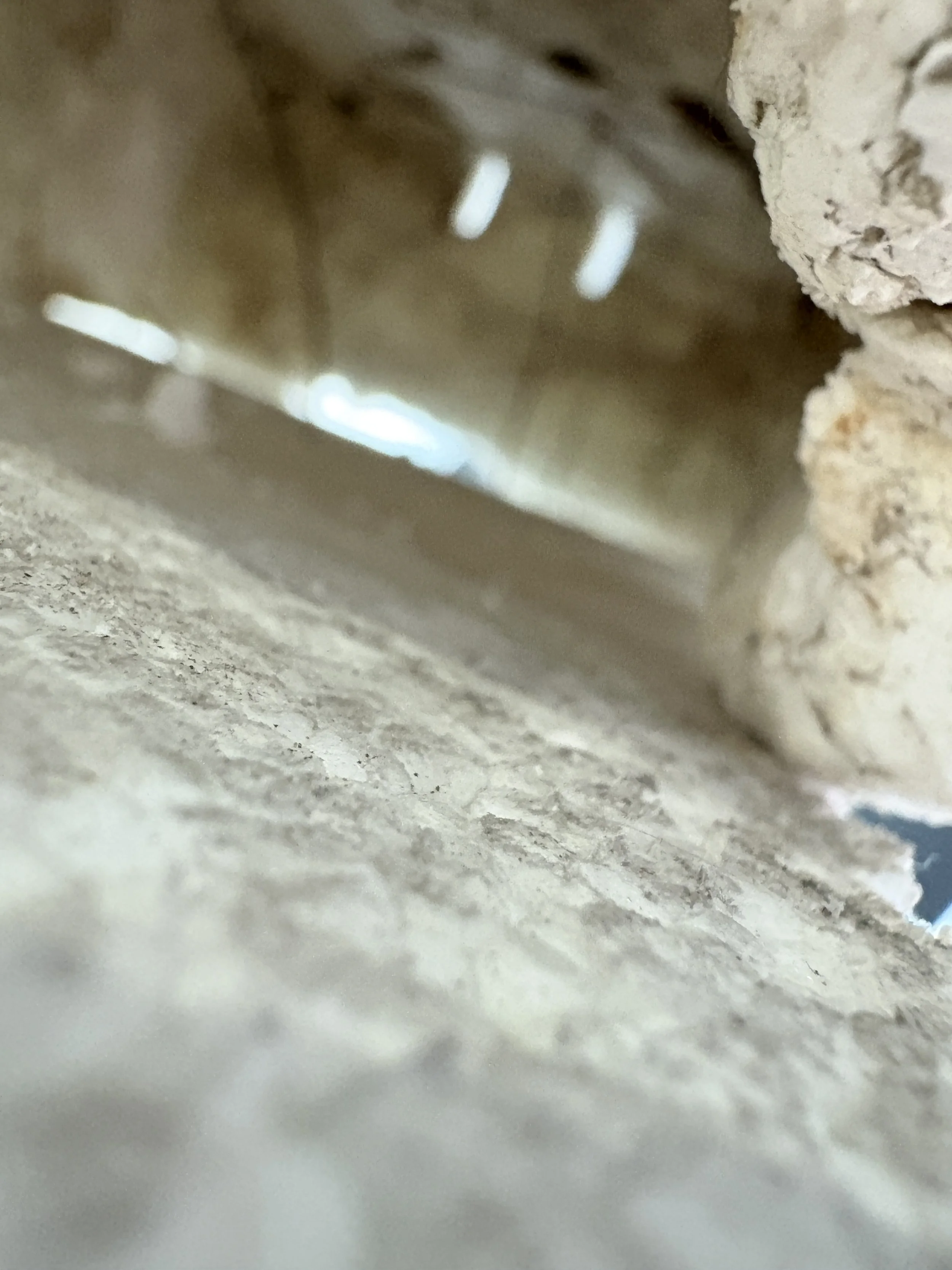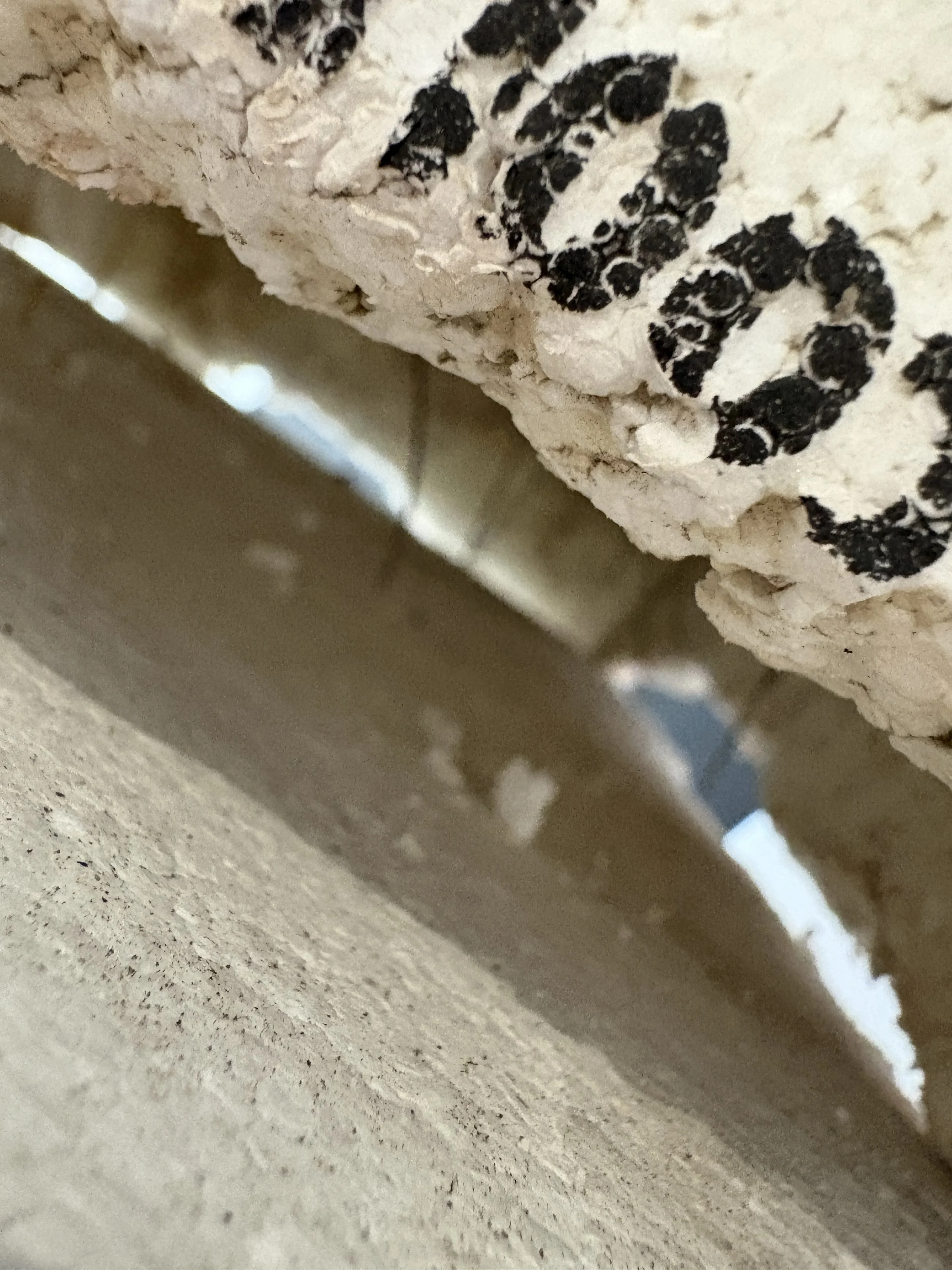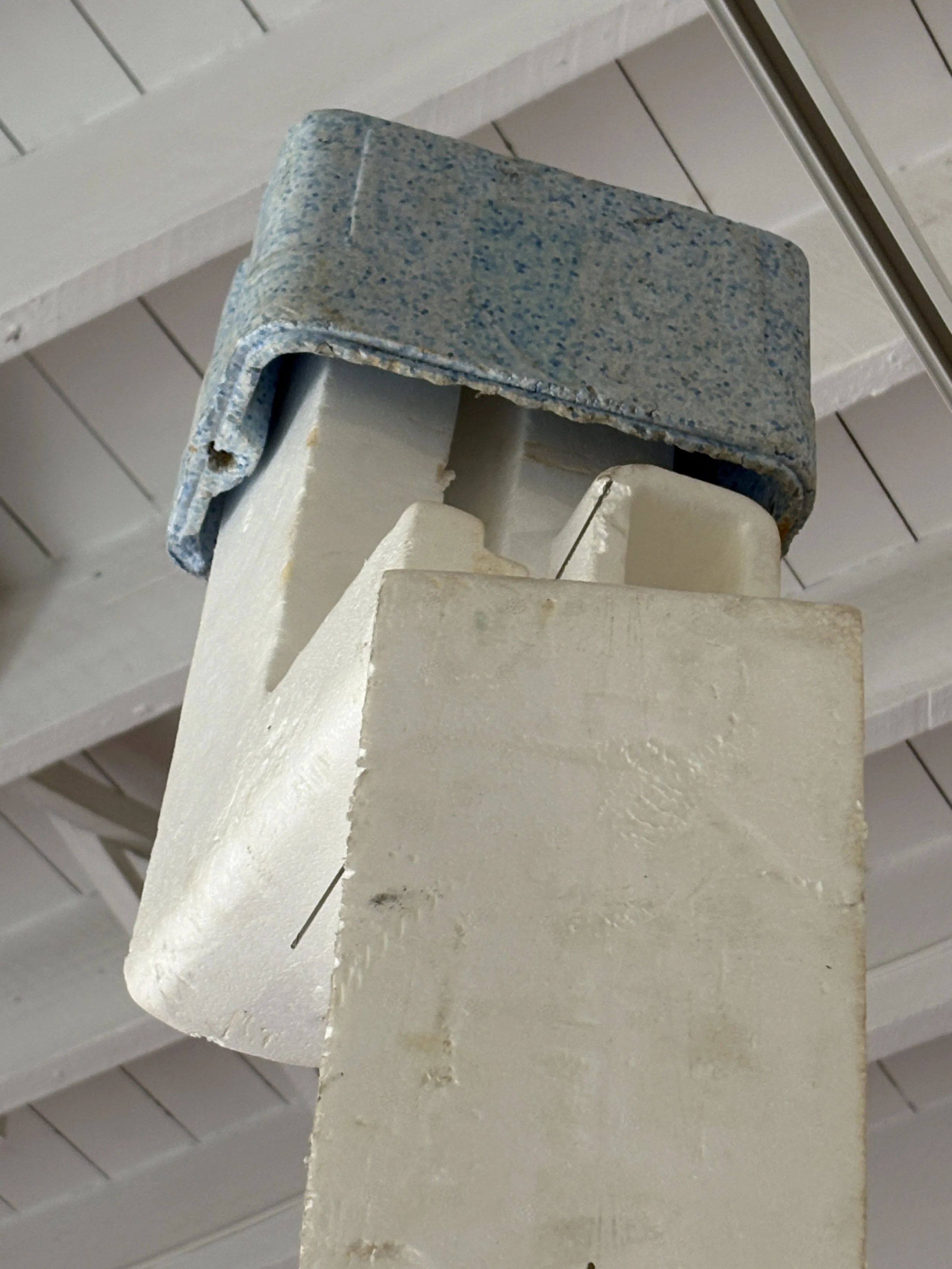 I dig dig dig into the ground and I find golf balls, bits of broken glass and what seems to be a mix of sand and microplastics. I don't know what year it is. I gather this polystyrene and I stack it. I wrap it with wire, I twist it all around, I wring out my hands with confusion and resolve to learn more. I learn more each time I speak with her, when I commune with her divine grace, when he reaches towards me with joy and squeezes. There are spirits in this plastic. Benzene, flame retardants. Holy things. Strange things. I live a little bit more and observe the trail I leave behind. I trace my fingers through the muck and dust and leave remnants behind. I am a remnant, I am left behind, borrowing from the giants and tucking myself in using their big smelly socks.
